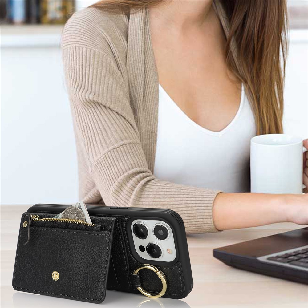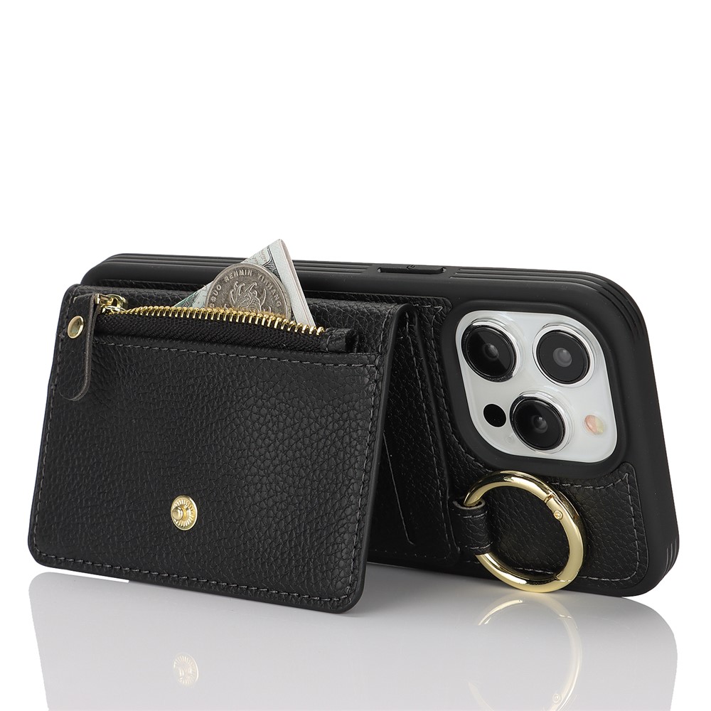 - Zipper Wallet with Multiple Card Slots Designed with a practical zipper wallet section and multiple card slots secured by a snap-button flap, making it easy to store your ID, credit cards, cash, or transit passes securely on the go