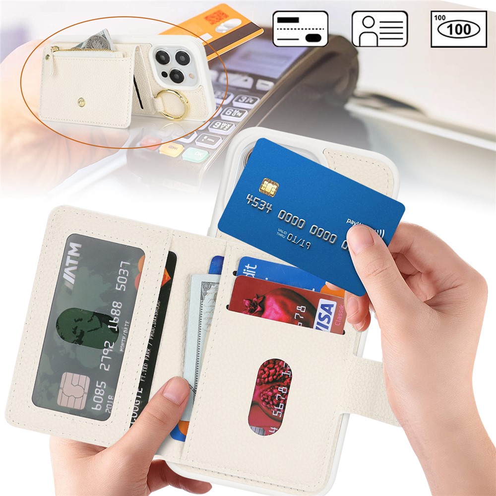 - Zipper Wallet with Multiple Card Slots Designed with a practical zipper wallet section and multiple card slots secured by a snap-button flap, making it easy to store your ID, credit cards, cash, or transit passes securely on the go