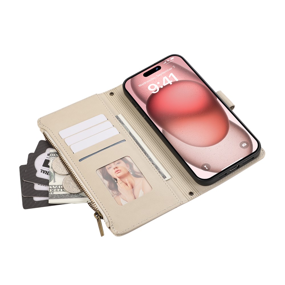 - Zipper Wallet Design Side zipper pocket allows secure storage of coins, bills, or cards, combining fashion and function