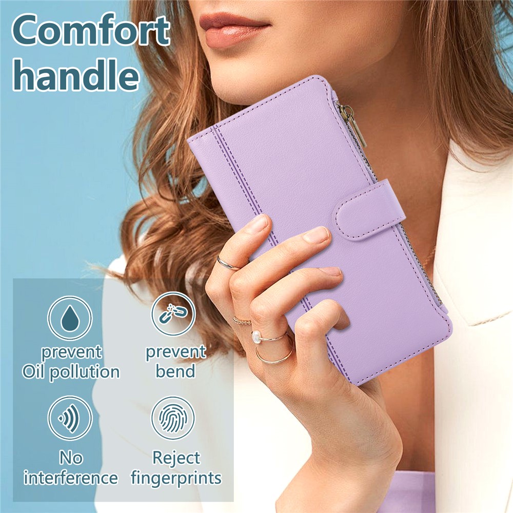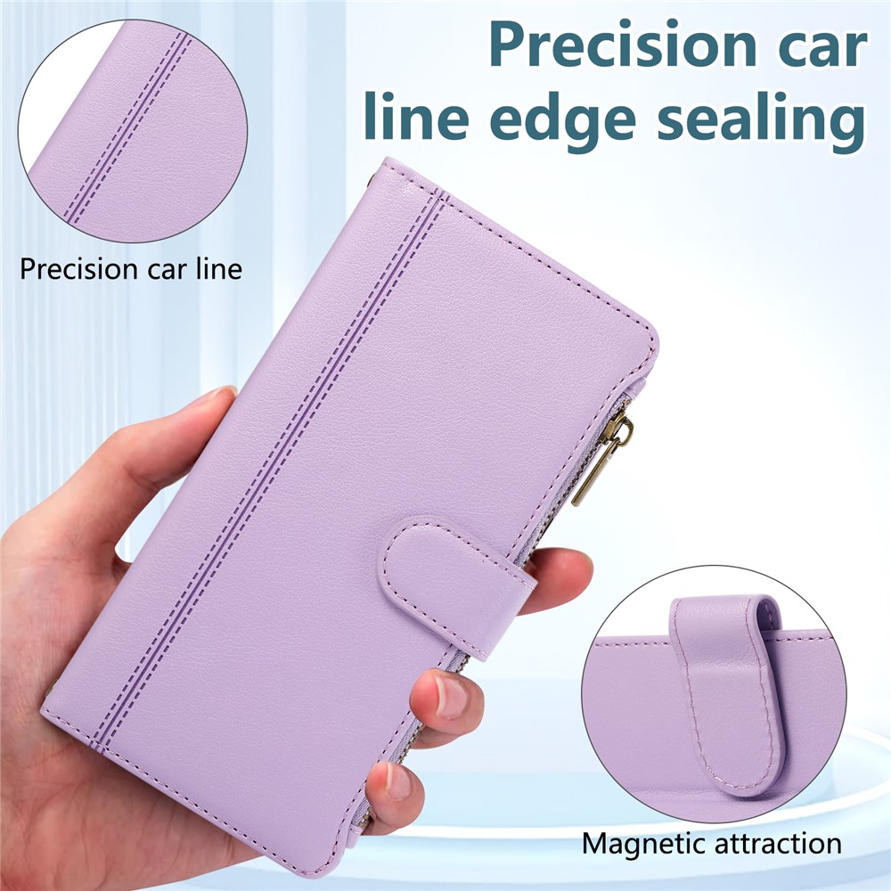 - Zipper Wallet Design Side zipper pocket allows secure storage of coins, bills, or cards, combining fashion and function