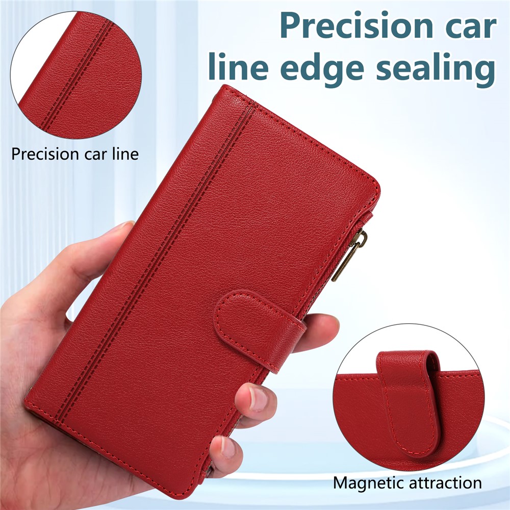 - Zipper Wallet Design Side zipper pocket allows secure storage of coins, bills, or cards, combining fashion and function