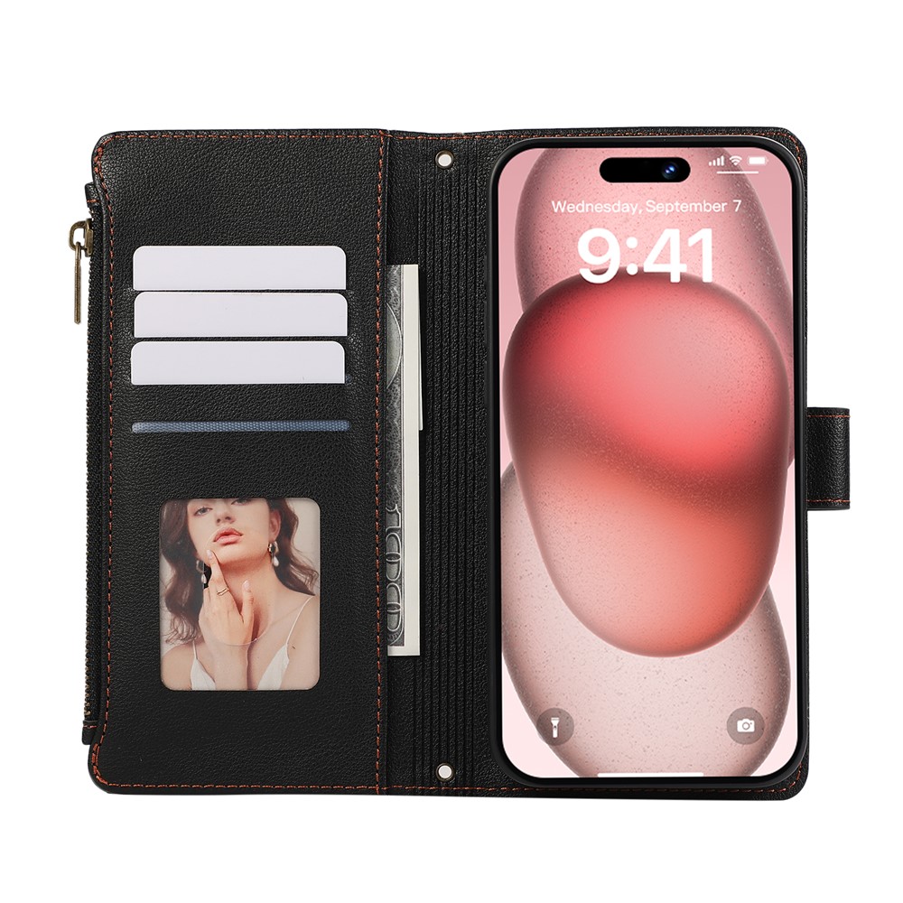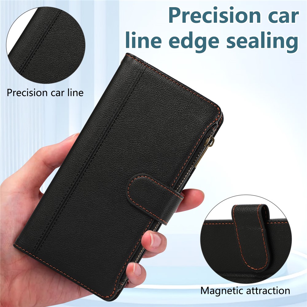 - Zipper Wallet Design Side zipper pocket allows secure storage of coins, bills, or cards, combining fashion and function