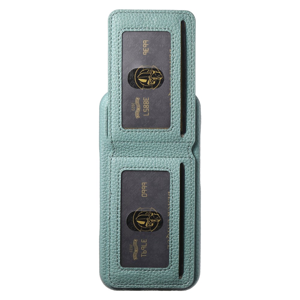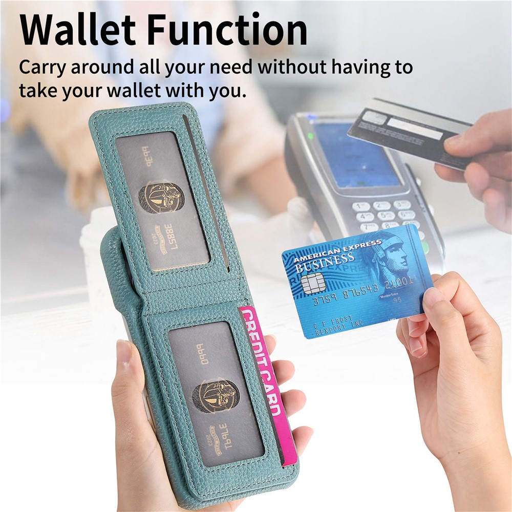 - Hidden Card Slots Features two concealed vertical flip compartments with card windows, ideal for storing ID and credit cards securely