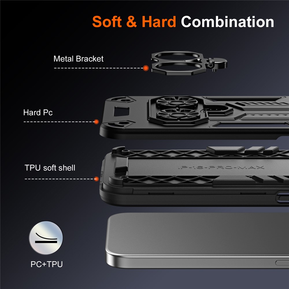 - Durable Hybrid Material Made of TPU + PC with a reinforced metal kickstand, combining flexibility, toughness, and strength for long-lasting use.
