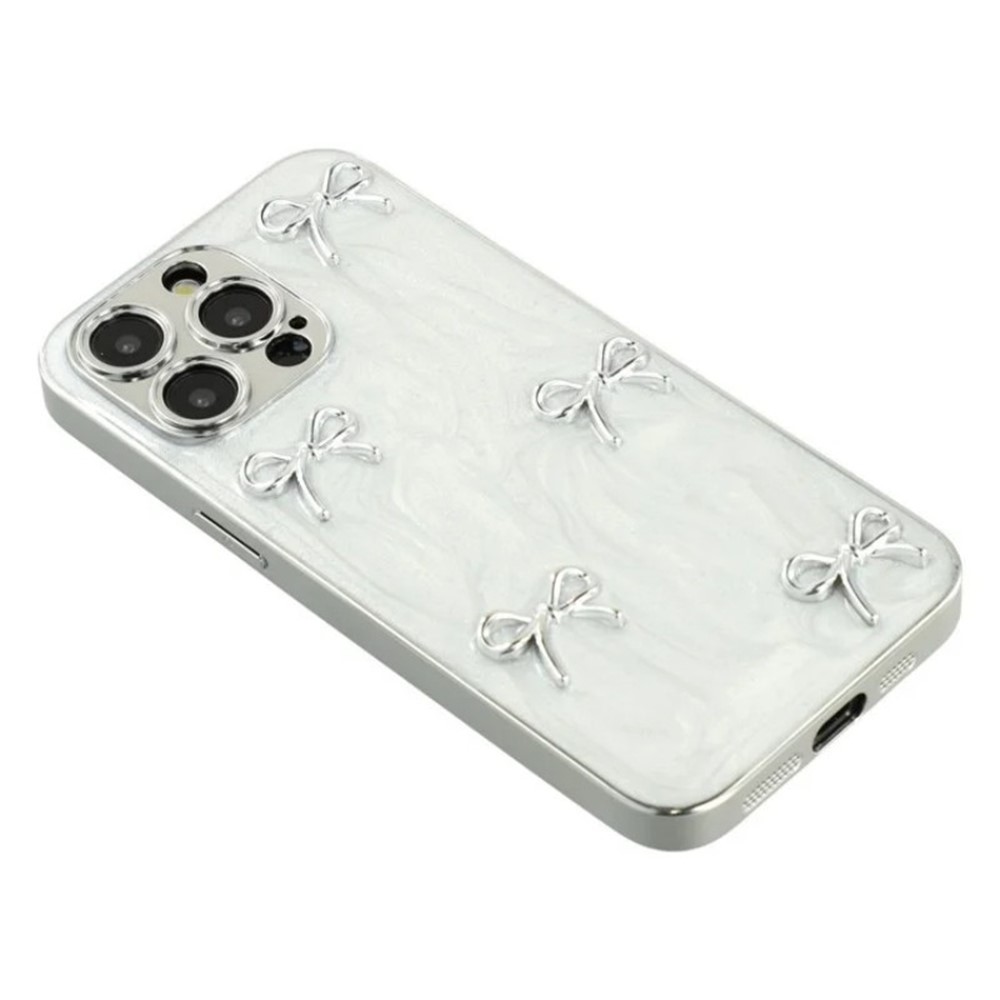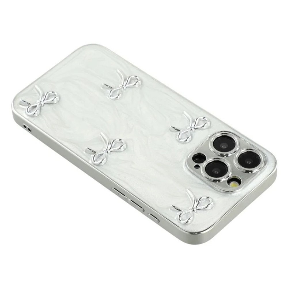For iPhone 15 Pro Max Case WANLONFENG Electroplated Epoxy TPU + Acrylic Phone Cover with Tempered Glass – Metal Bow