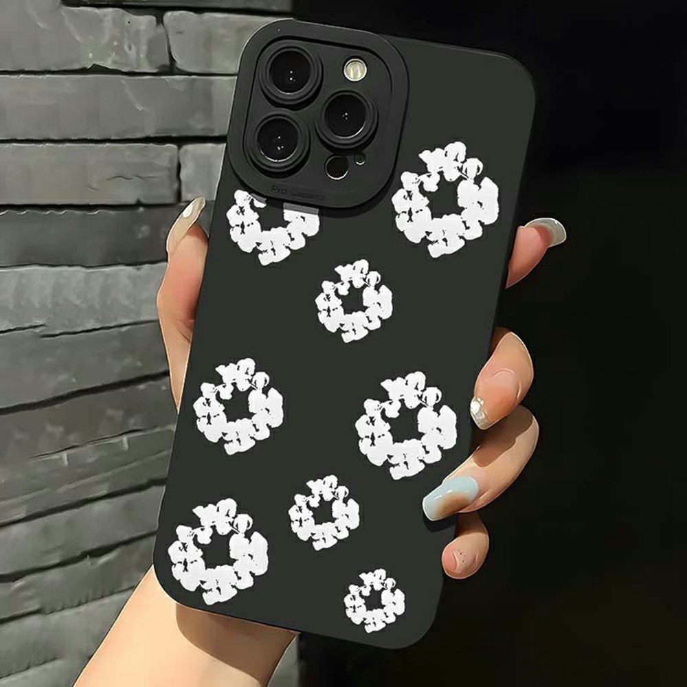 - Minimalist Floral Design Features a simple yet stylish white floral pattern on a black background