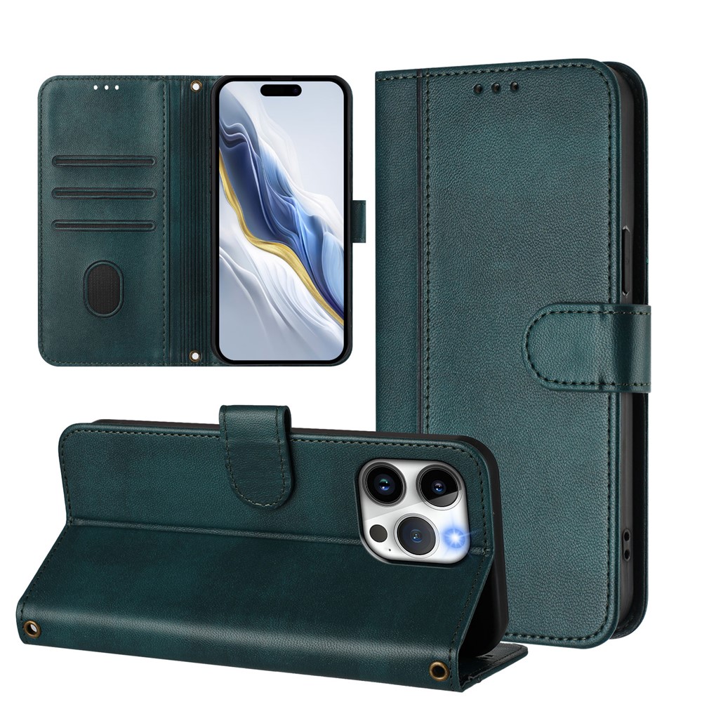 For iPhone 15 Pro Max Cases Wallet Stand Retro Texture Leather Phone Cover with Lanyard – Dark Green