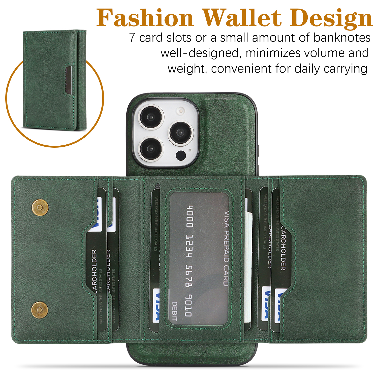 - MagSafe Compatible Supports for MagSafe accessories and wireless charging, featuring a minimalist magnetic leather bi-fold design with card holder functionality.