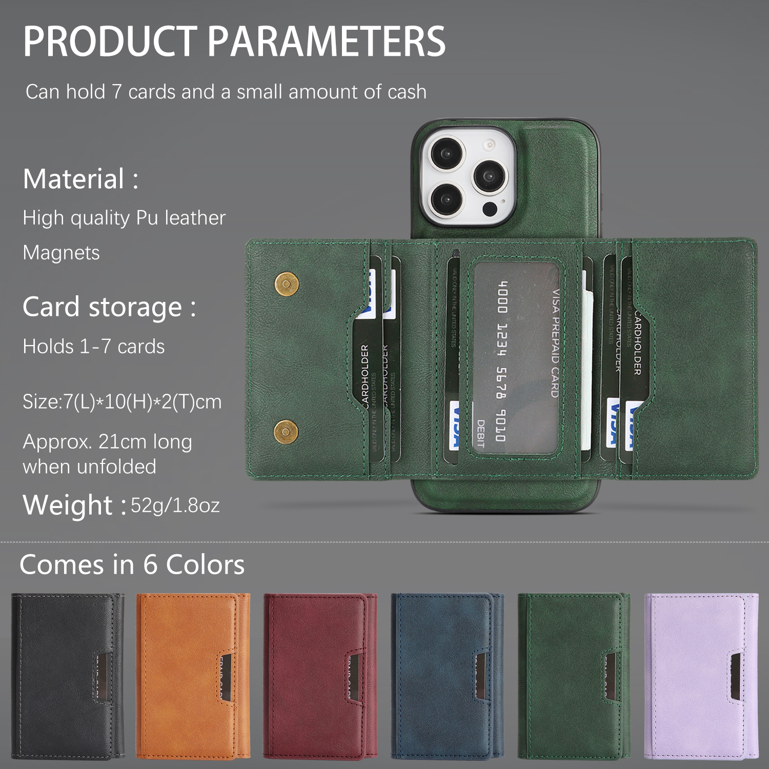- Strong Magnetic Connection Utilizes high-performance N52 ring magnets in both the phone case and card holder, allowing for easy detachment and combination through powerful magnetic force.
