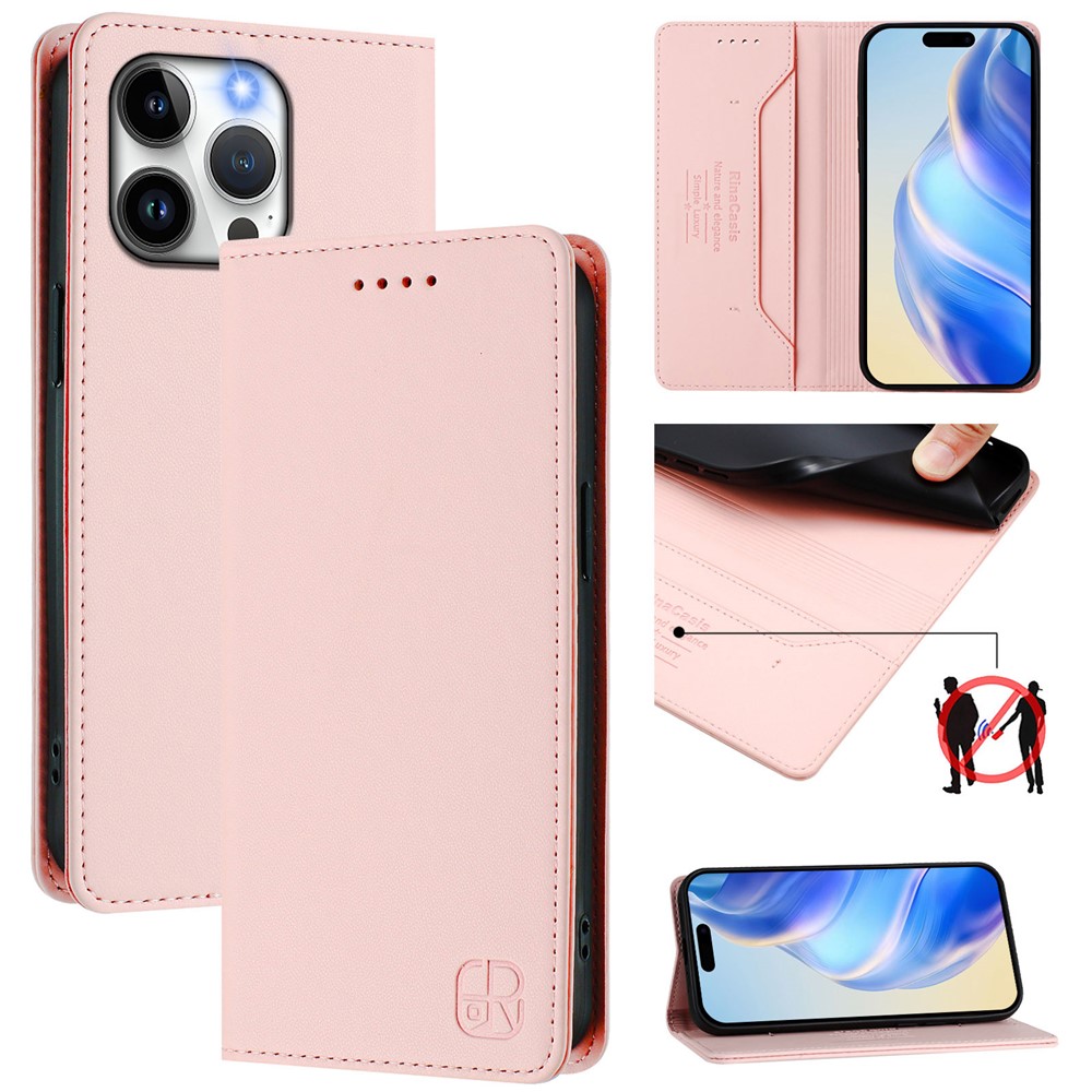For iPhone 15 Pro Max Leather Case RINACASIS RC01 Phone Cover with RFID Blocking Wallet Stand – Pink
