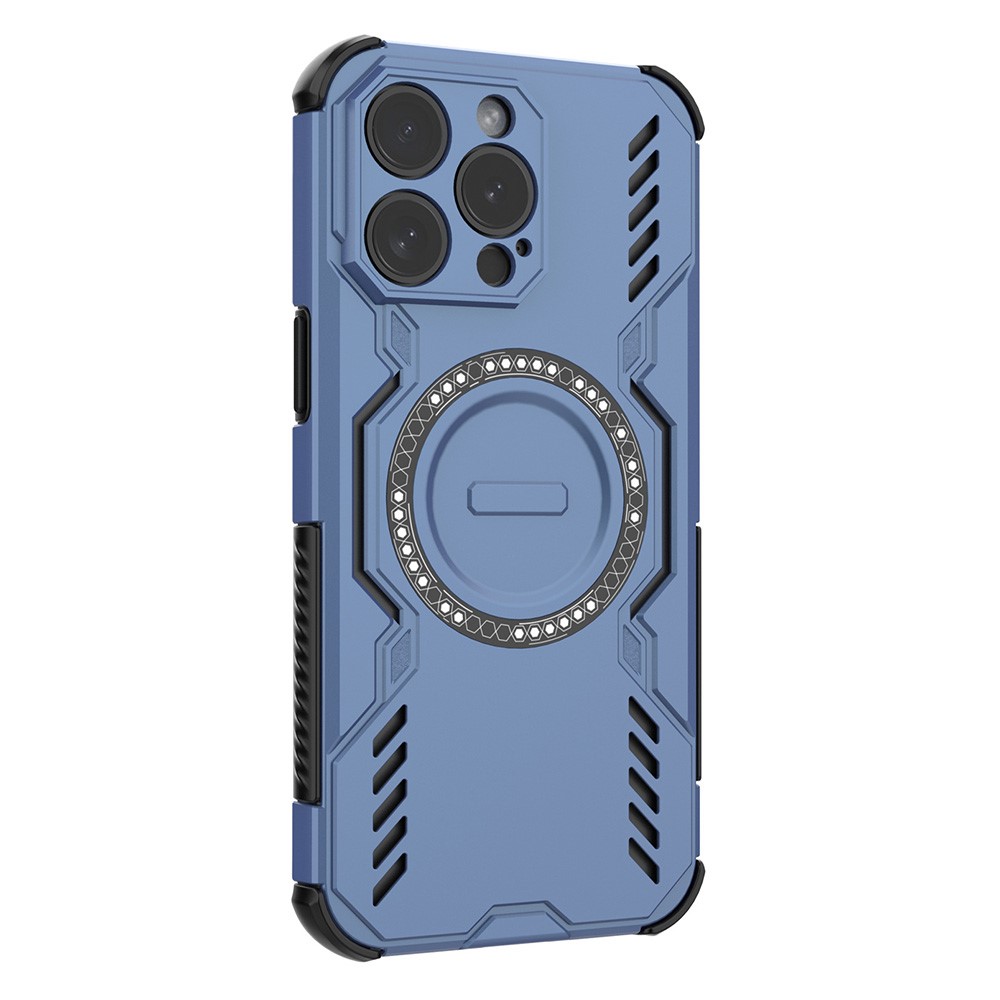For iPhone 15 Pro Max Magnetic Case Butterfly Armor Hollow Heat Dissipation PC + TPU Phone Cover – Blue