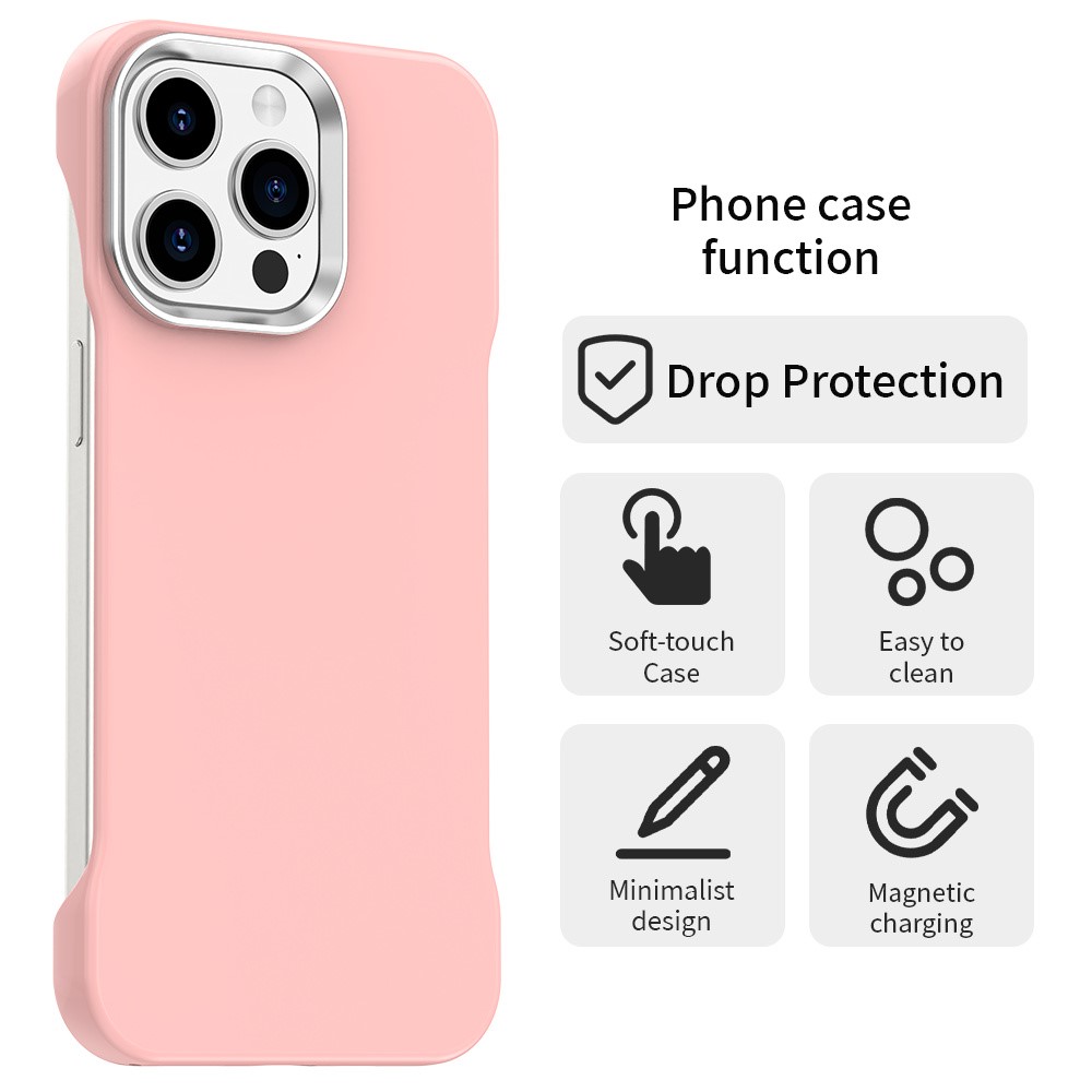 For iPhone 15 Pro Max Magnetic Case Frameless Ultra Thin TPU + PET Phone Cover Reinforced Corners – Pink