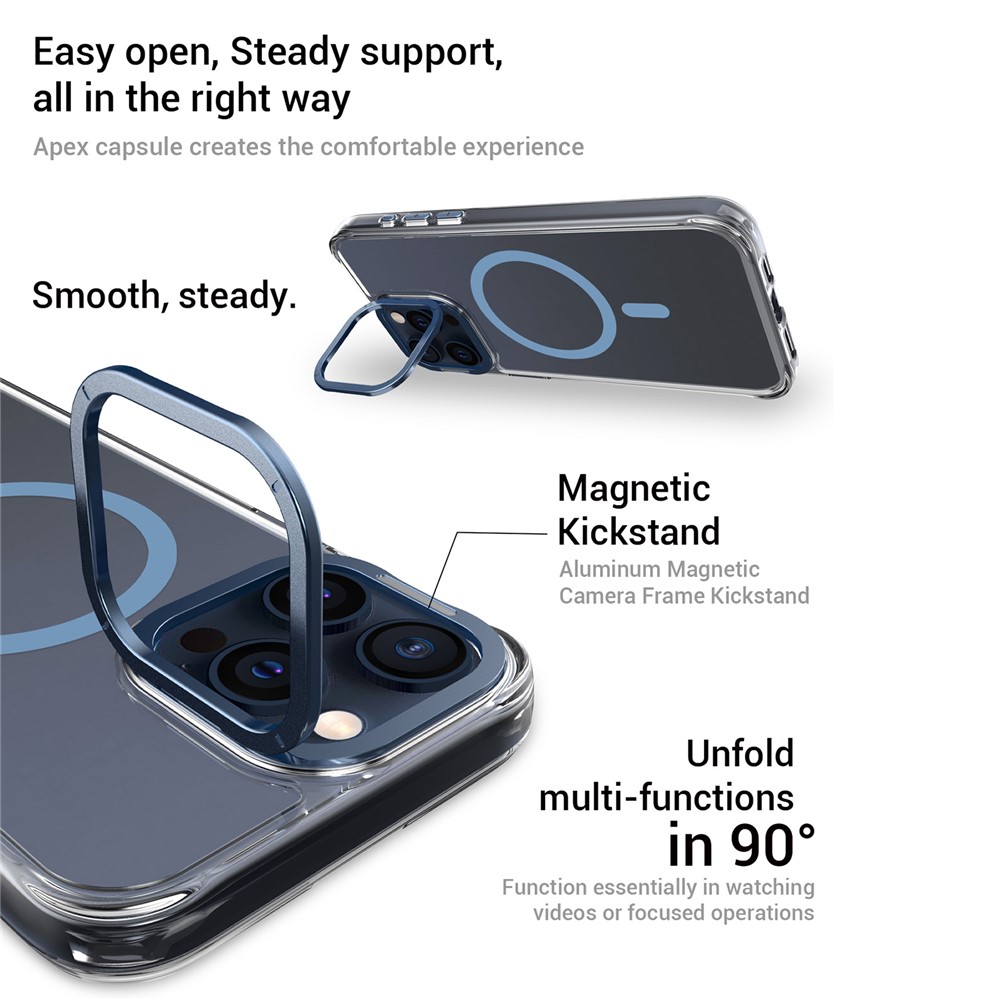 • Camera Frame Kickstand Metal lens kickstand with damping design allows free-angle adjustments (0-90°) for hands-free viewing, photography, or travel convenience