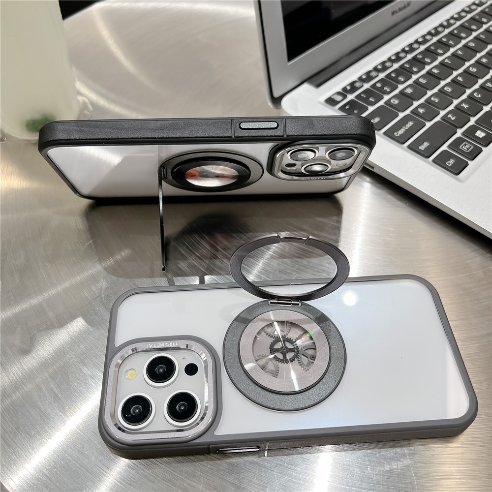 - Innovative Gear Ring Kickstand Features a circular rotating kickstand with built-in gear mechanism that produces a satisfying clicking sound—designed to help relieve stress while offering stable hands-free viewing