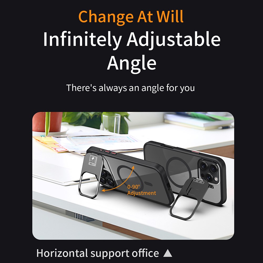 - Foldable Camera Frame Kickstand Designed with a dual-axis foldable lens frame that functions as a kickstand, providing stable support in both portrait and landscape modes for hands-free viewing