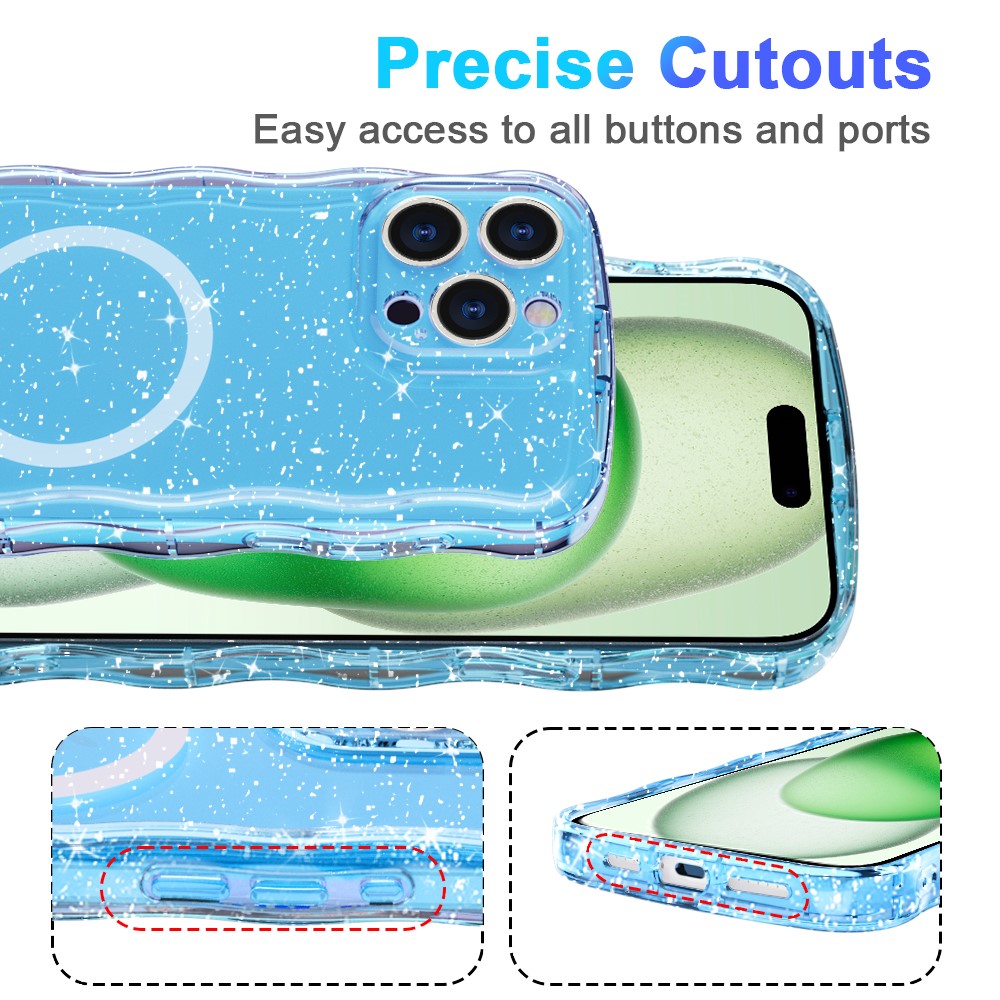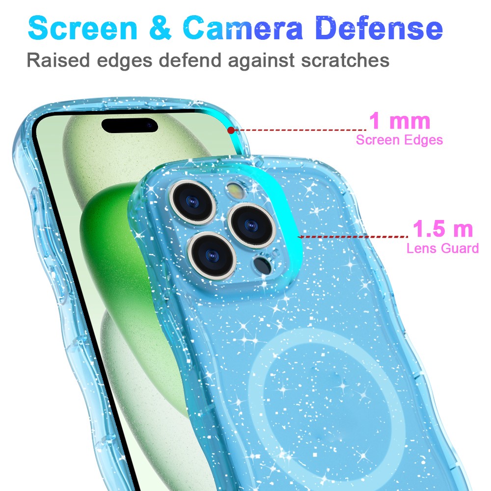 - Wave Edge Glitter Design Features a stylish wave-shaped frame with embedded glitter or vibrant patterns, adding a fashionable and eye-catching touch to your phone