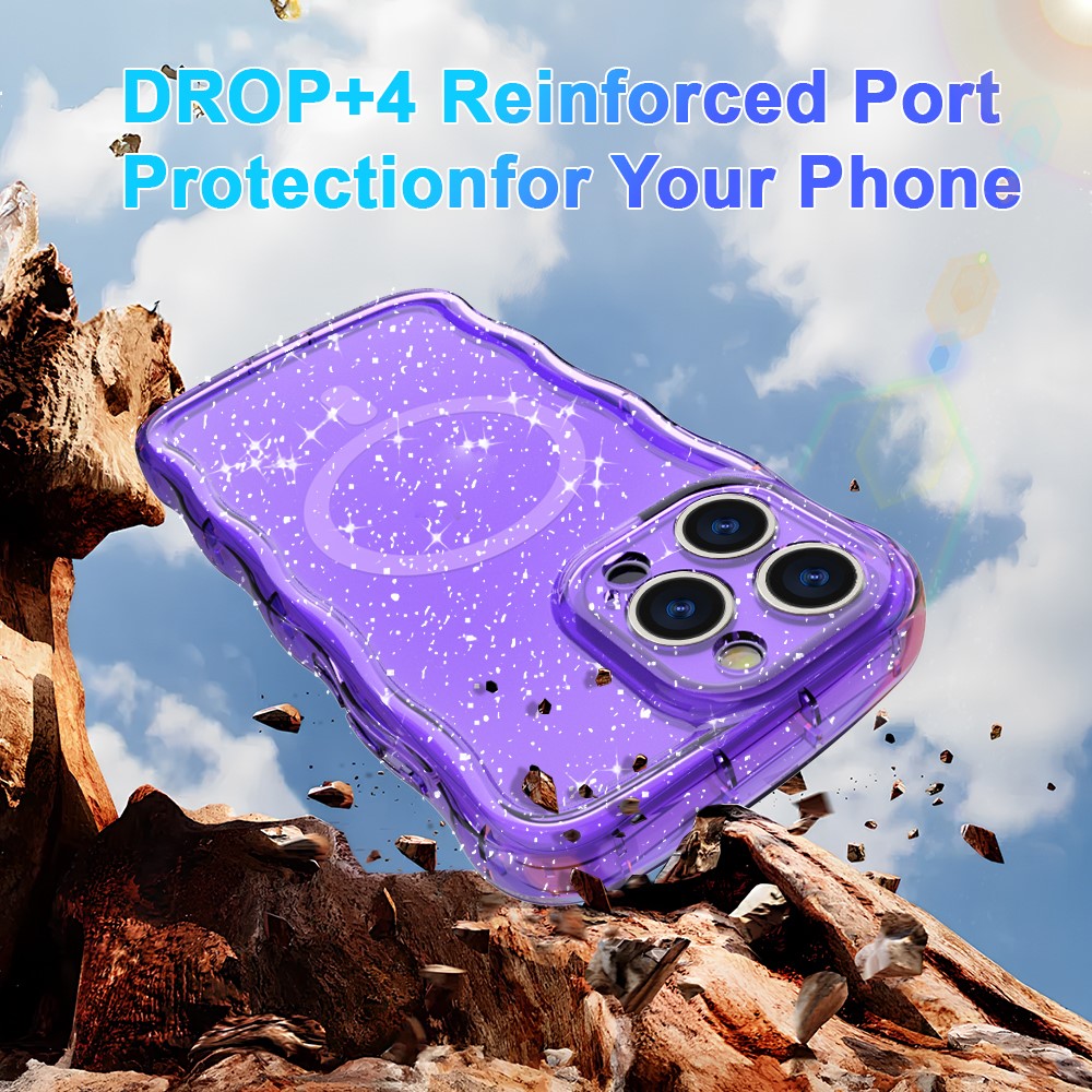 - Wave Edge Glitter Design Features a stylish wave-shaped frame with embedded glitter or vibrant patterns, adding a fashionable and eye-catching touch to your phone