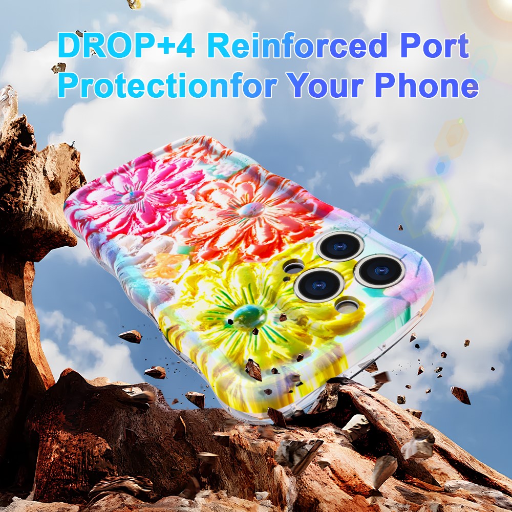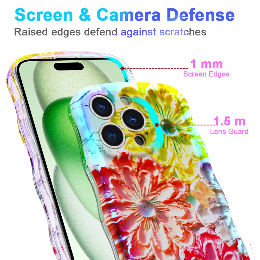 - Wave Edge Floral Design Features a unique wave-shaped frame paired with vibrant floral patterns, adding a fresh, elegant, and fashionable look to your phone