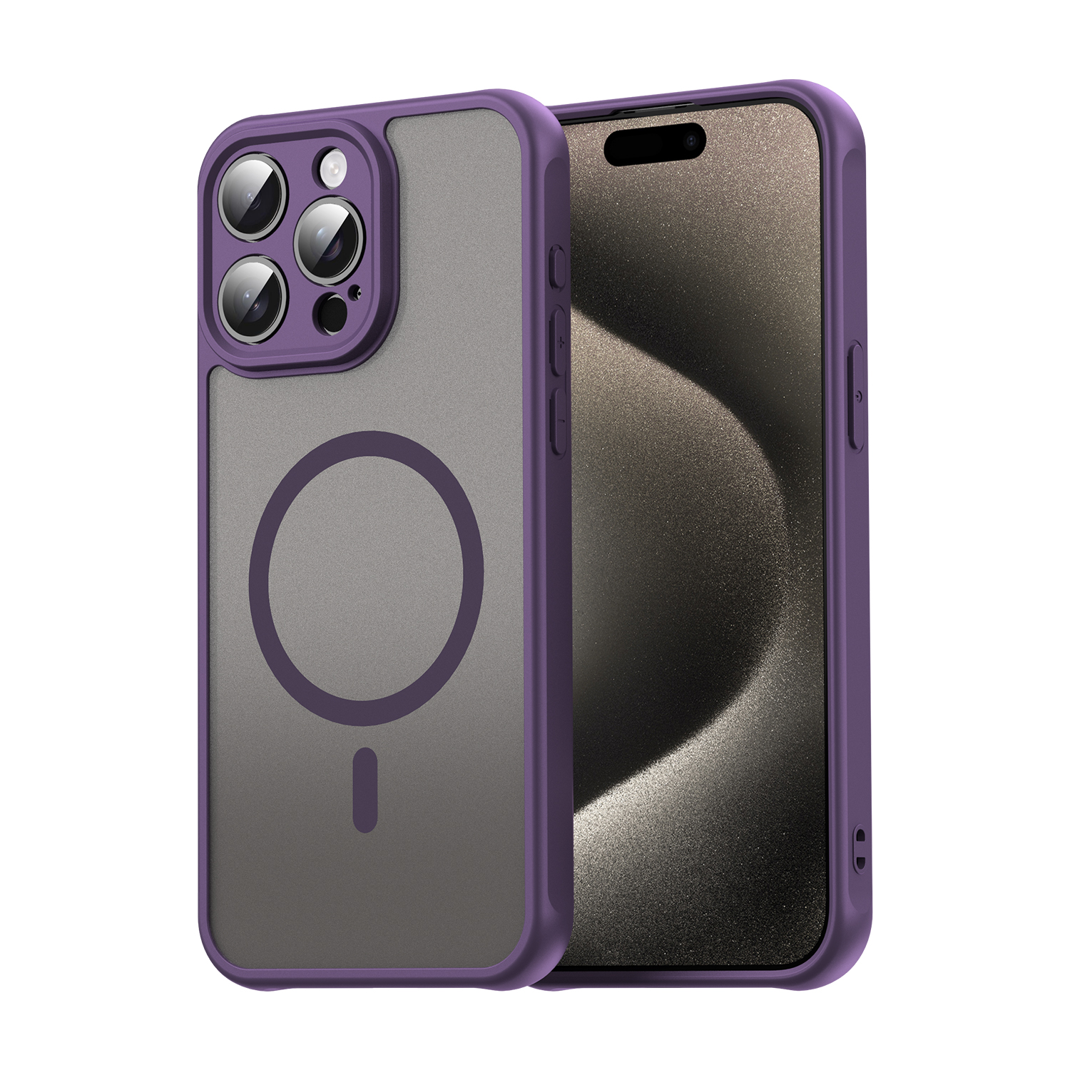 For iPhone 15 Pro Max Magnetic Case with Screen Film WANLONFENG FD Series Skin Touch TPU + PC Phone Back Cover – Purple
