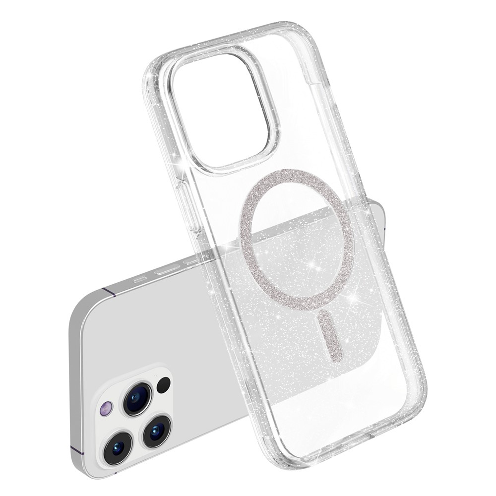 For iPhone 15 Pro Max Phone Case Compatible with MagSafe Glitter PC + TPU Hybrid Shockproof Cover – White