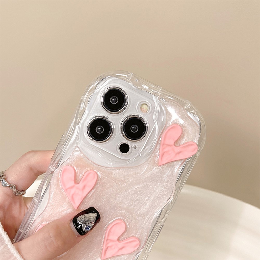 For iPhone 15 Pro Max Phone Cases TPU Cell Phone Back Cover with Crinkled Heart Design
