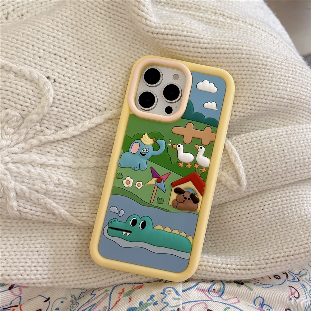 For iPhone 15 Pro Max Silicone Case Cute Animal Farm Design Shockproof Phone Back Cover
