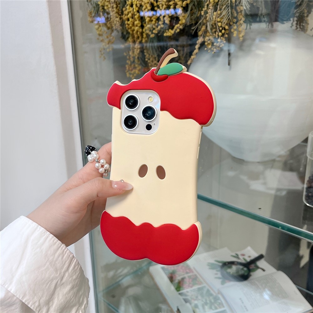 For iPhone 15 Pro Max Silicone Case Cute Eaten Apple Design Shockproof Phone Back Cover