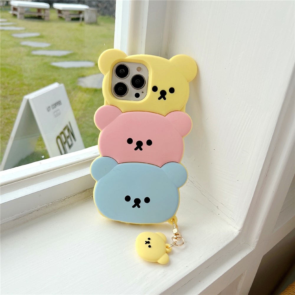 For iPhone 15 Pro Max Silicone Case Cute Three Bears Design Shockproof Phone Back Cover with Charm