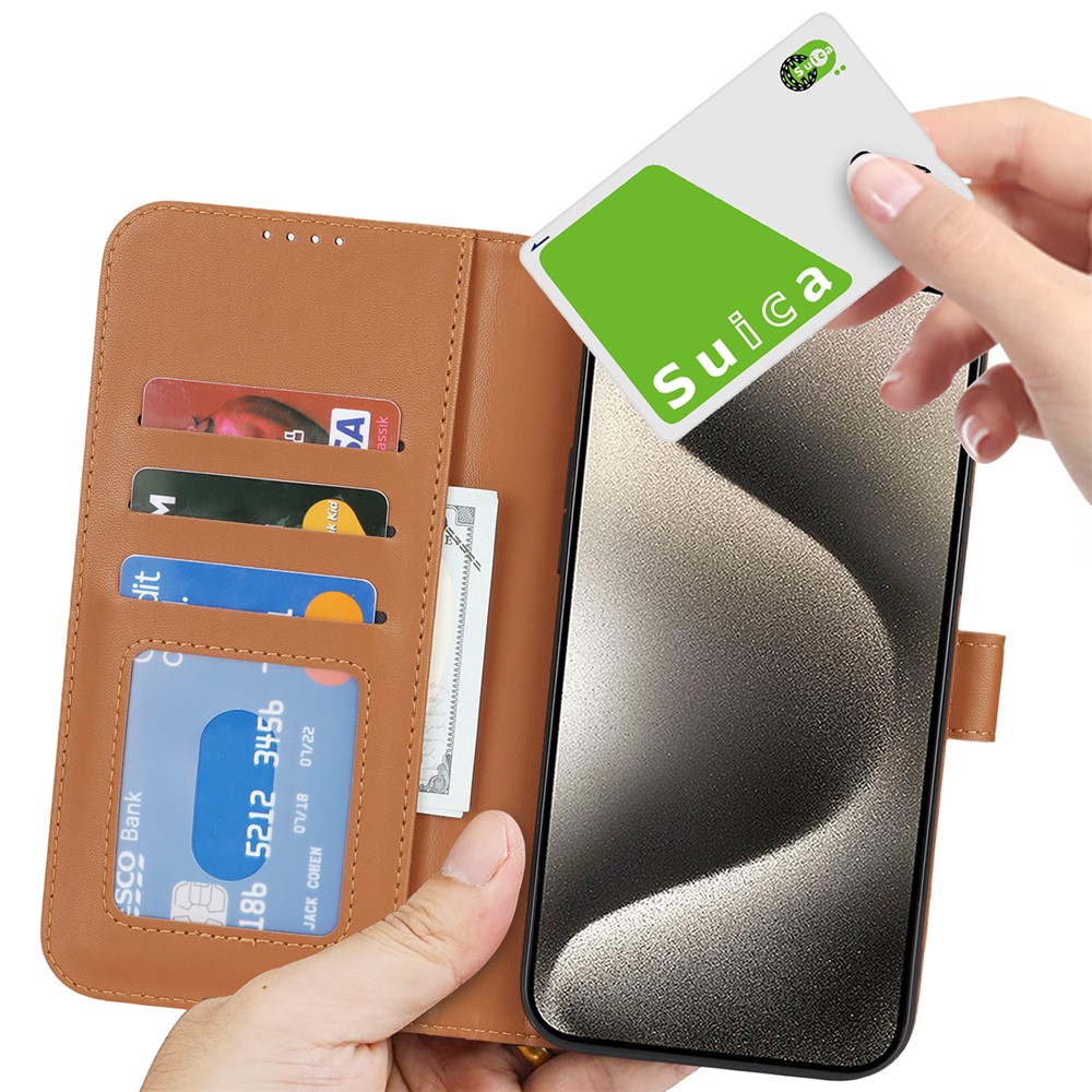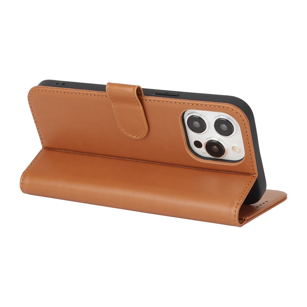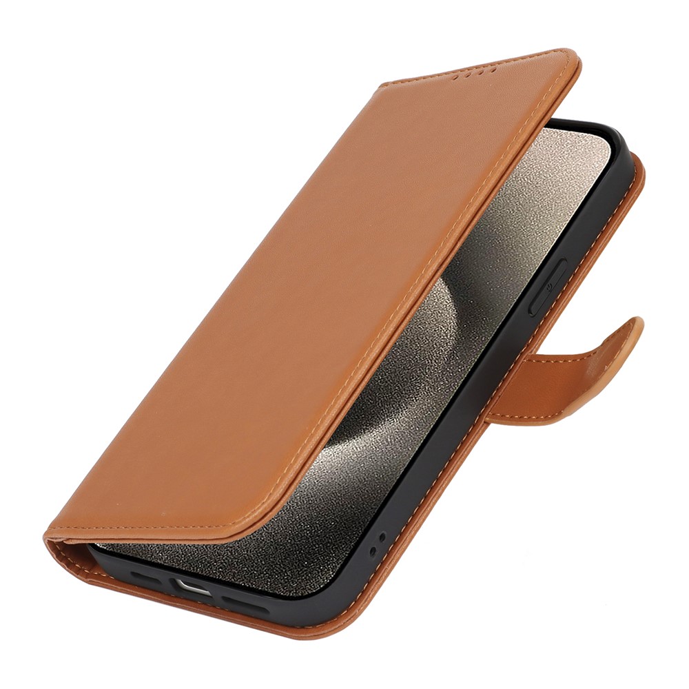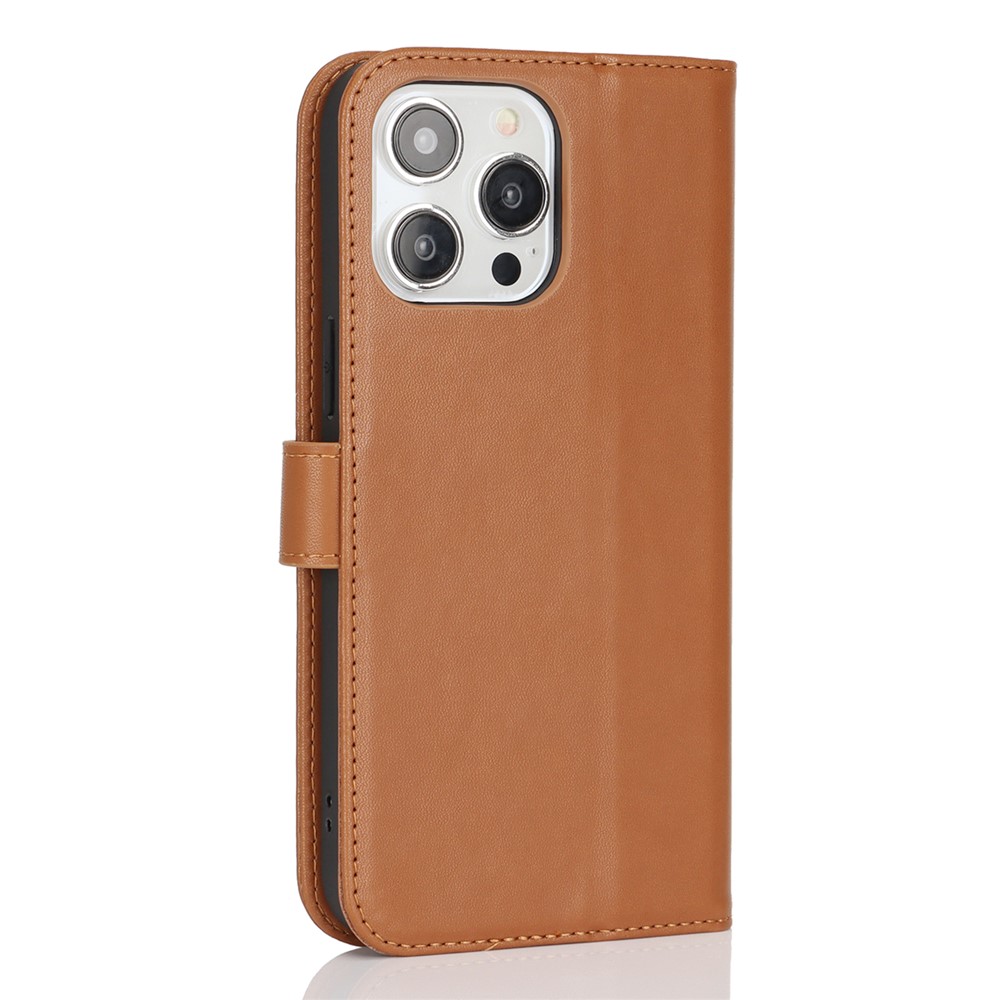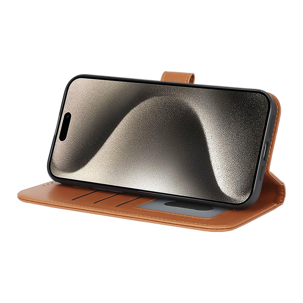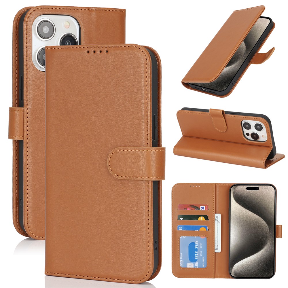 For iPhone 15 Pro Max Stand Case Shockproof Leather Wallet Phone Cover – Light Brown