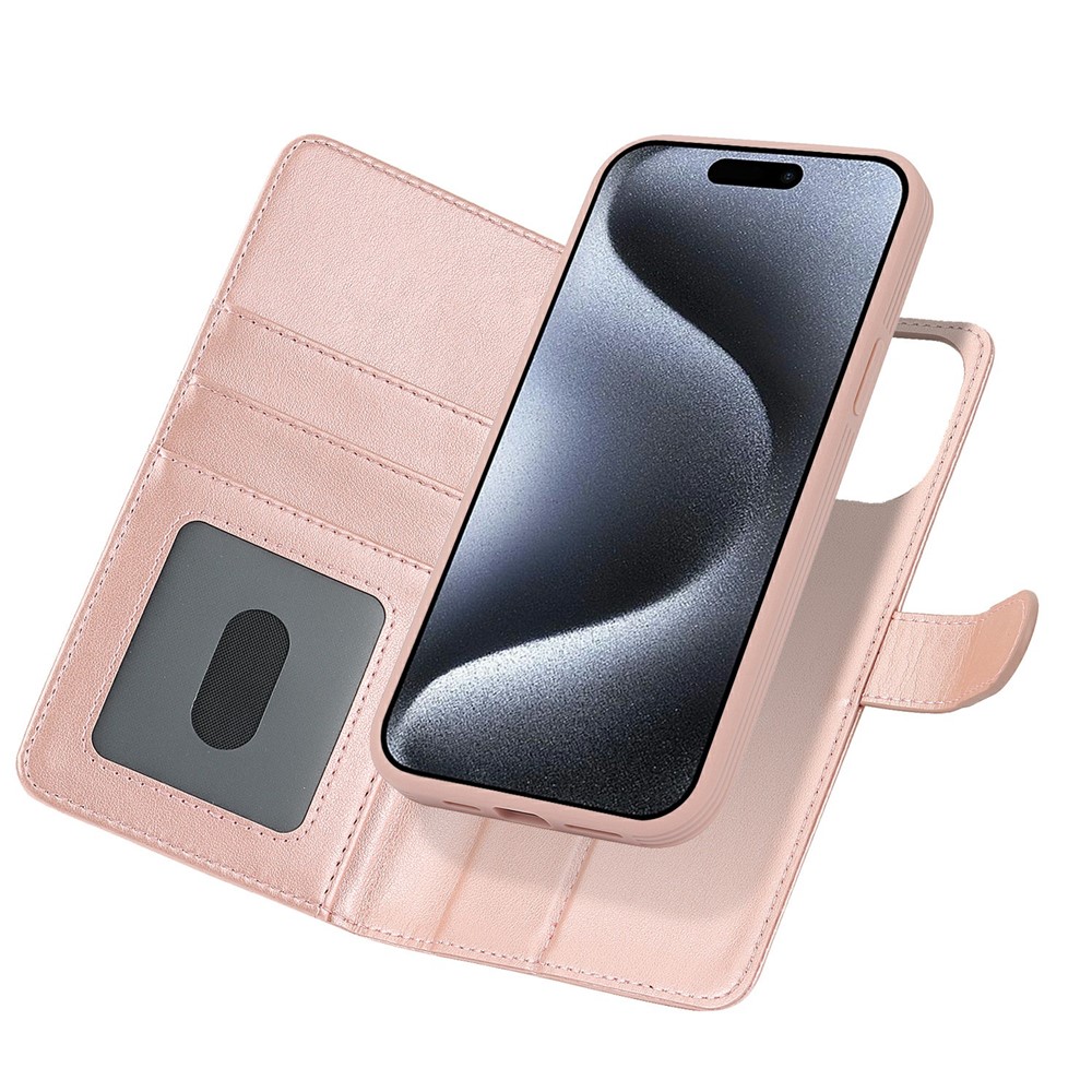 For iPhone 15 Pro Max Wallet Case Compatible with MagSafe Anti-Drop Detachable PU Leather Phone Cover – Rose Gold