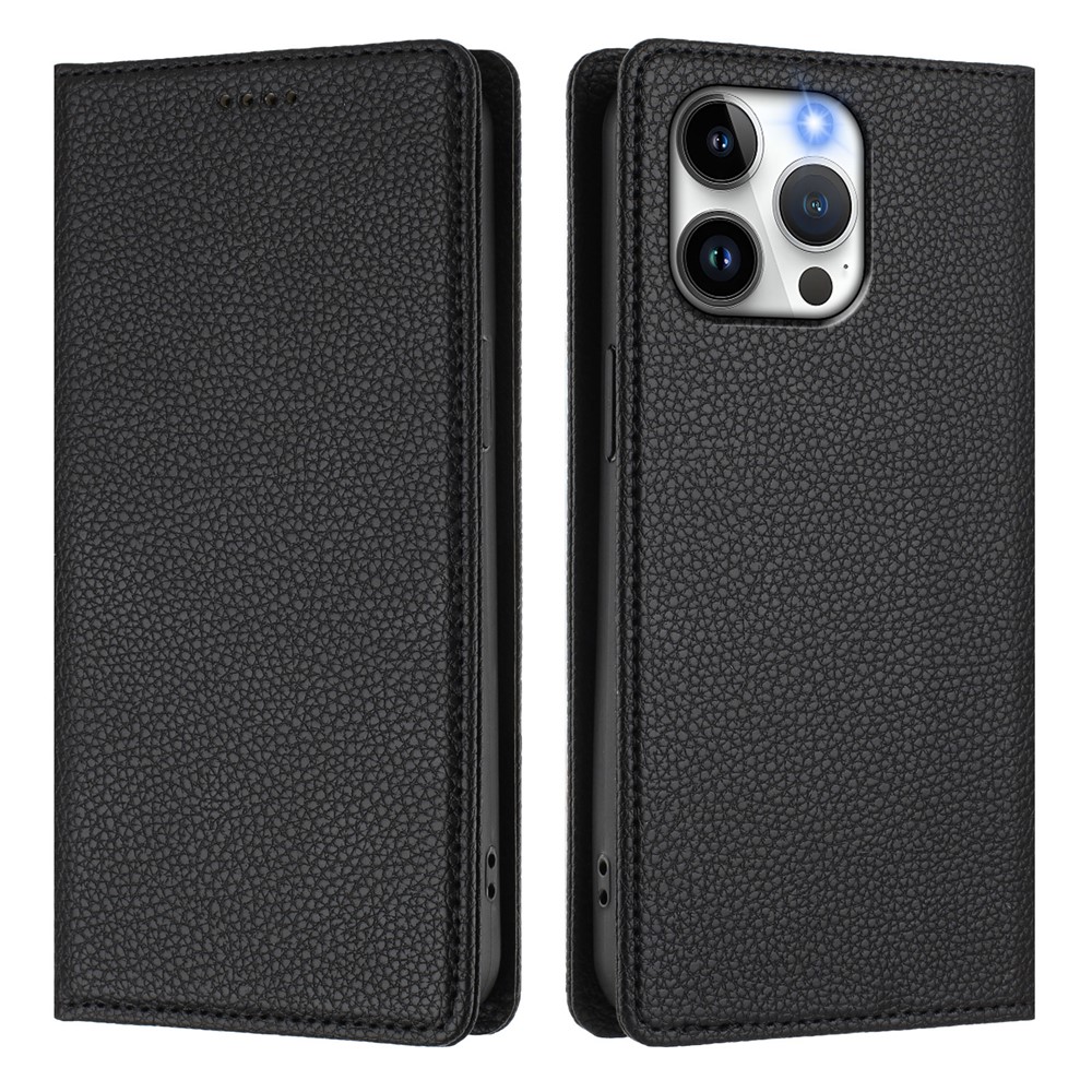 For iPhone 15 Pro Max Wallet Case RFID Blocking Litchi Texture Leather Mobile Cover – Black