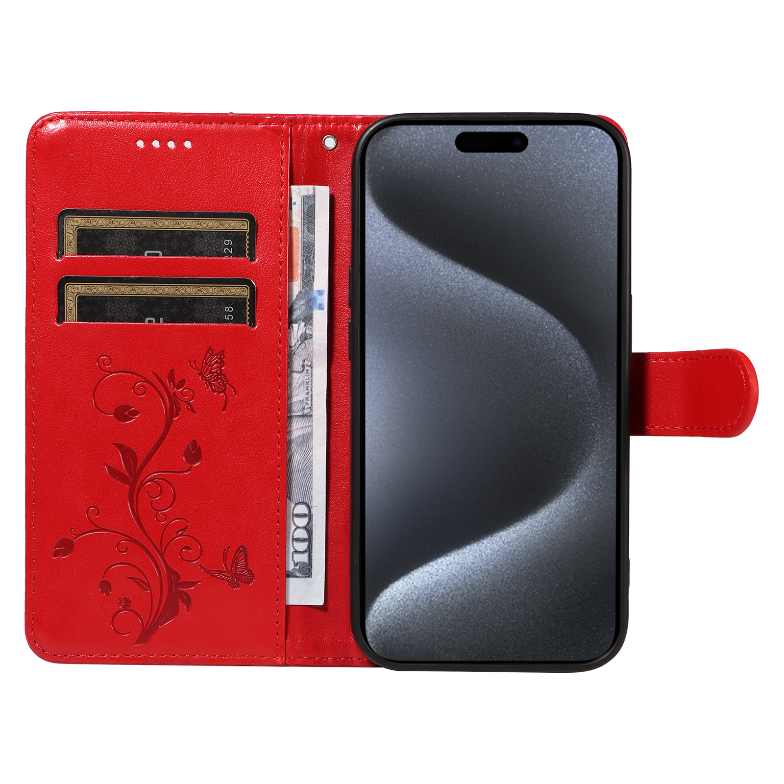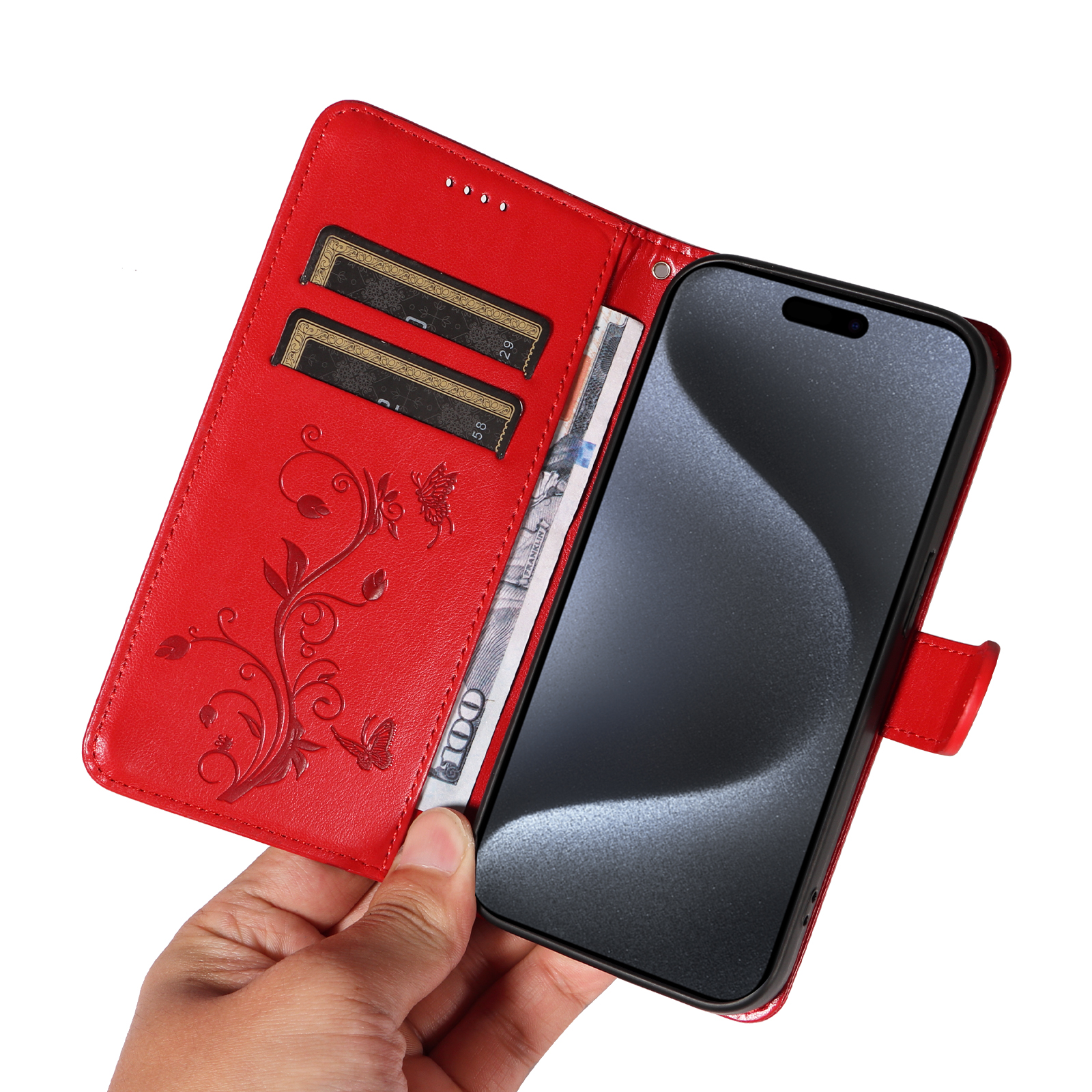 - Elegant Pattern Imprinted Features a stunning butterfly and flower pattern imprinted design on the front cover and the inner card slots area, adding a touch of luxury and uniqueness
