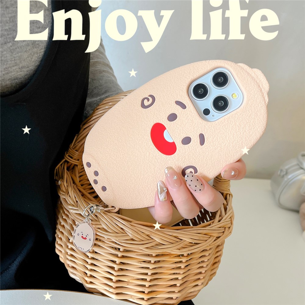 For iPhone 15 Pro Silicone Case Cute Lotus Root Design Shockproof Phone Back Cover with Charm