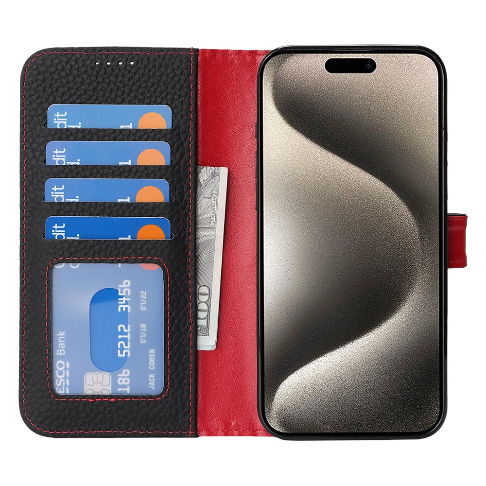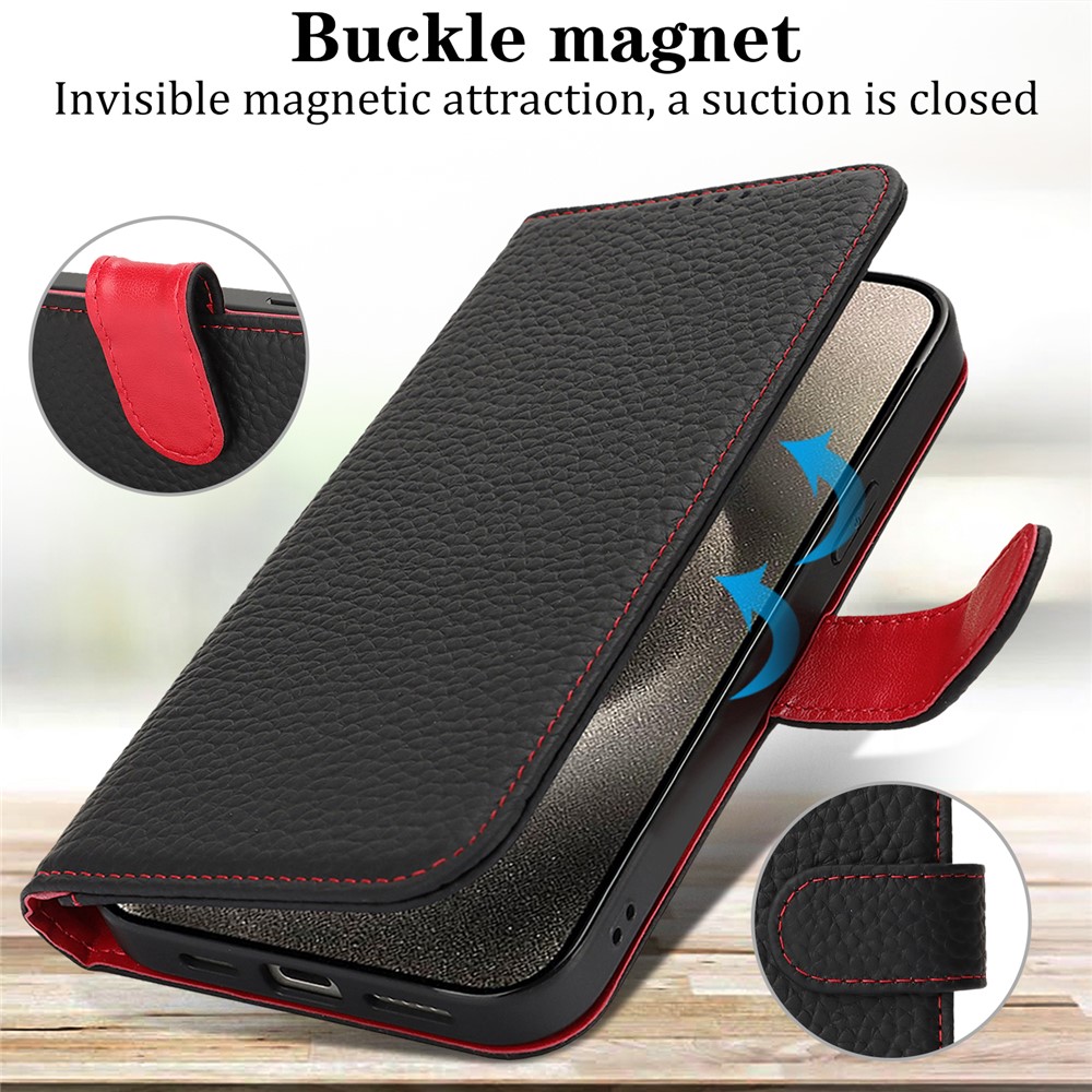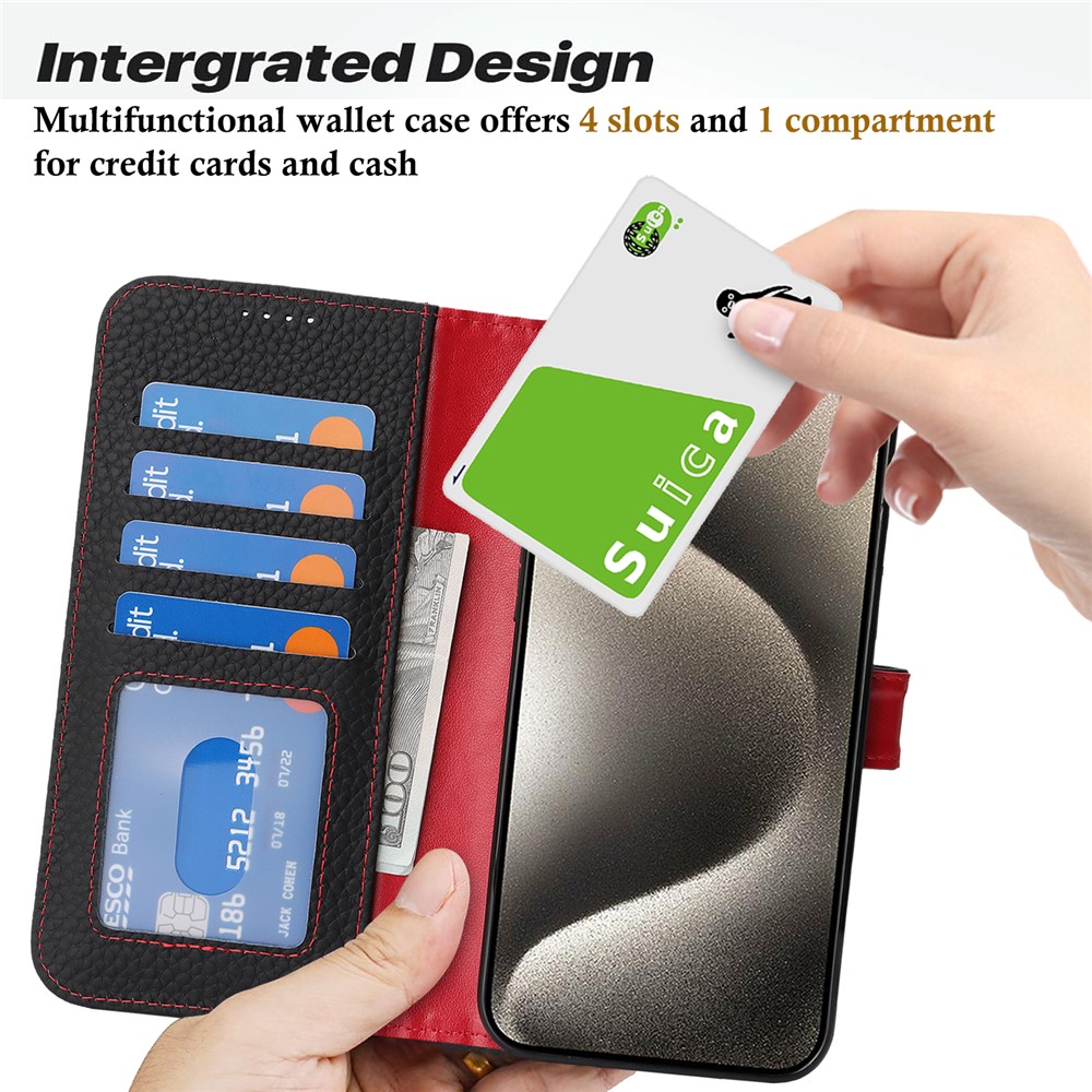 - Premium Material Combination Crafted with a litchi textured genuine cow leather exterior for a premium look and feel, paired with a flexible TPU inner shell that offers excellent shock absorption and long-lasting protection