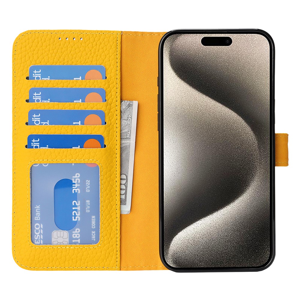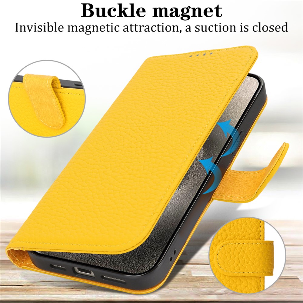 - Premium Material Combination Crafted with a litchi textured genuine cow leather exterior for a premium look and feel, paired with a flexible TPU inner shell that offers excellent shock absorption and long-lasting protection
