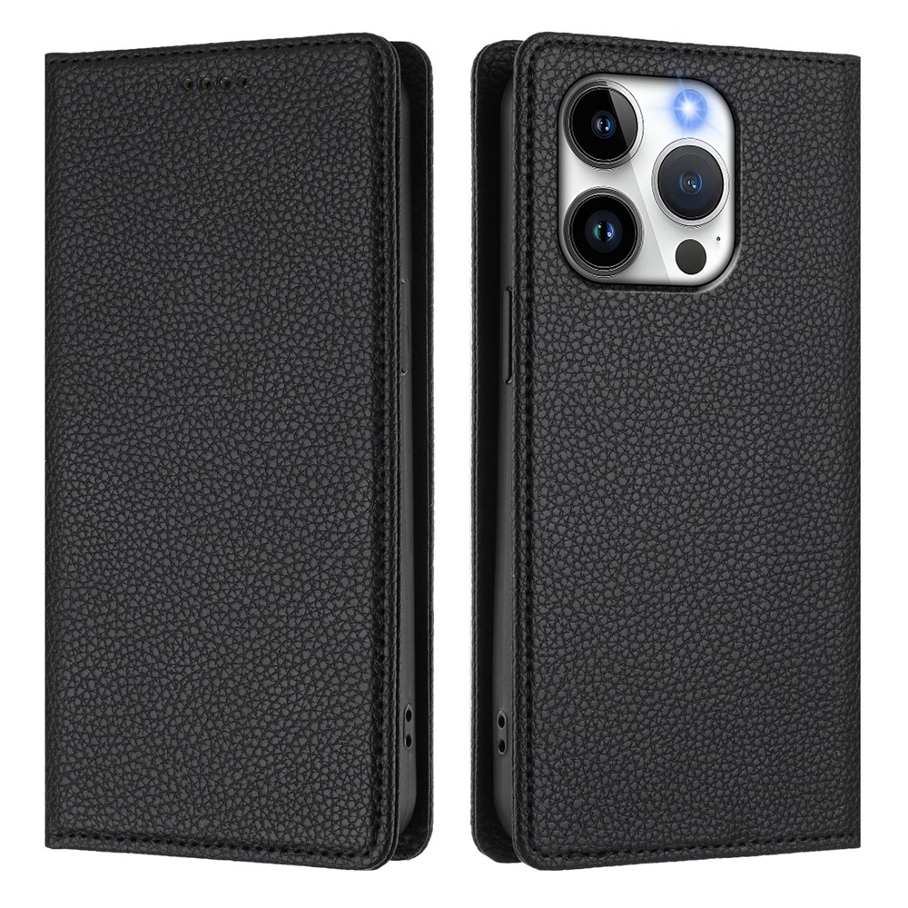 For iPhone 15 Pro Wallet Case RFID Blocking Litchi Texture Leather Mobile Cover – Black