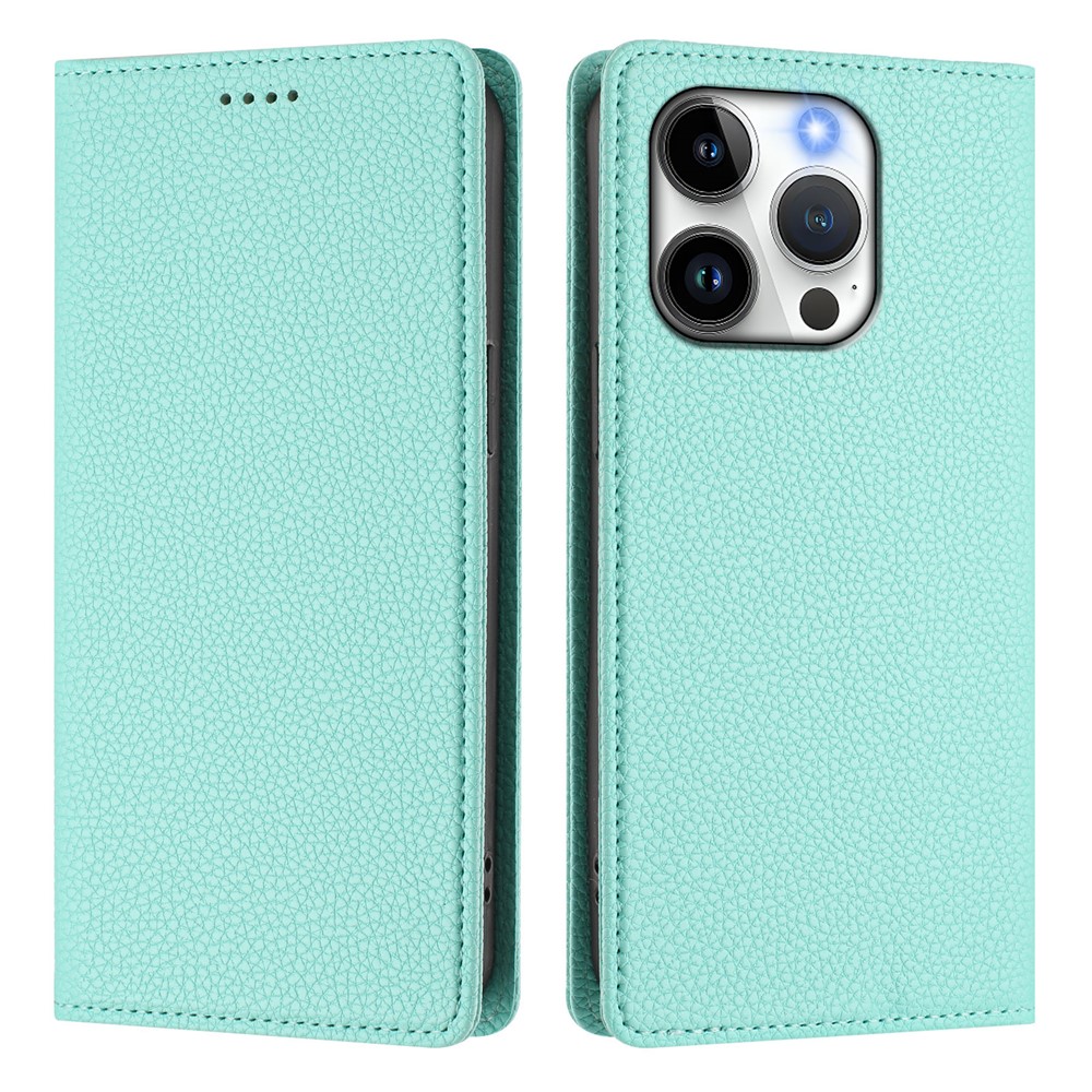For iPhone 15 Pro Wallet Case RFID Blocking Litchi Texture Leather Mobile Cover – Mint Green