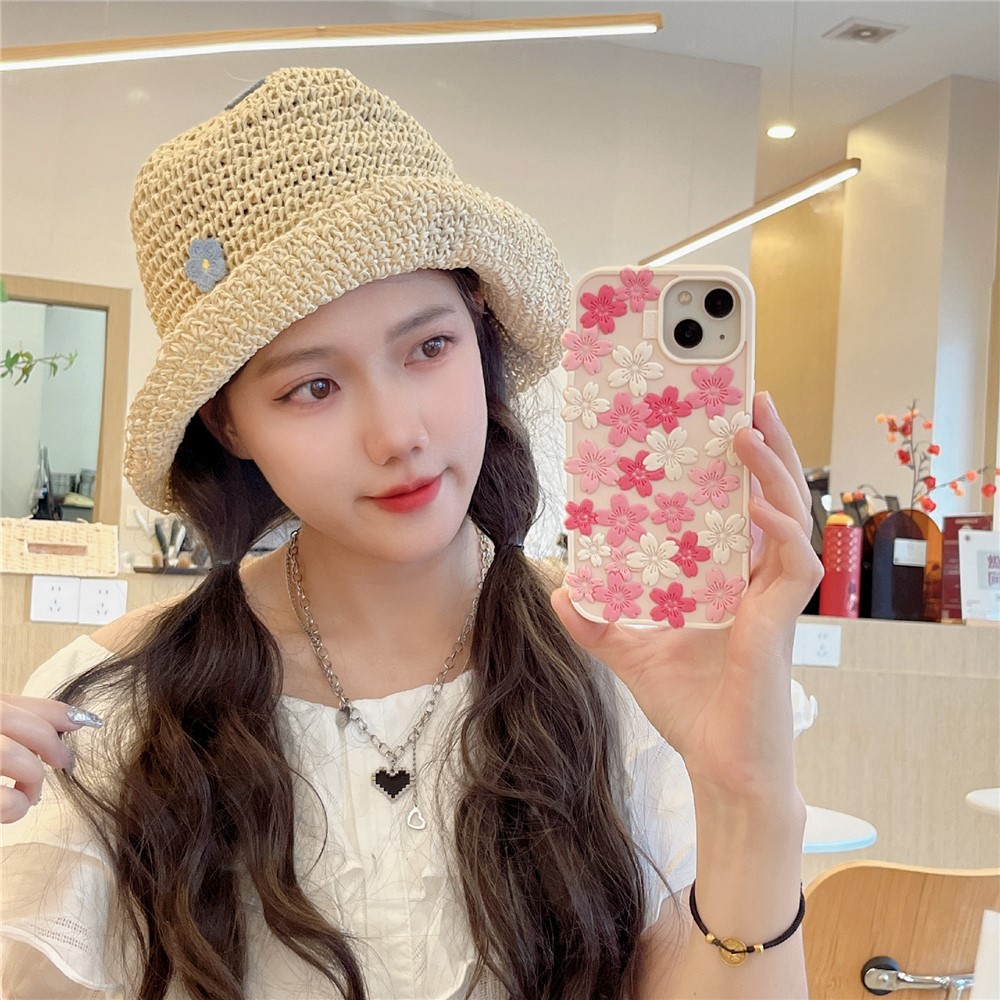 For iPhone 15 Silicone Case 3D Cherry Blossom Pattern Shockproof Phone Cover
