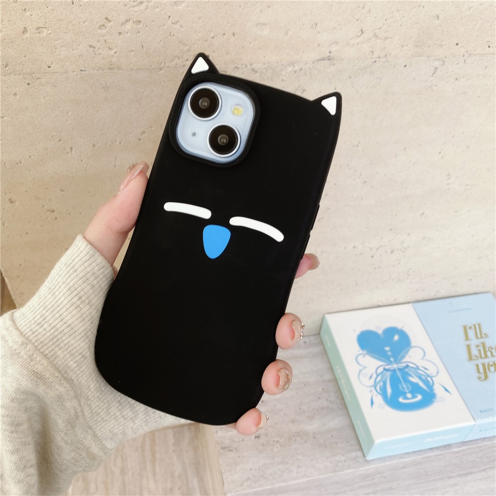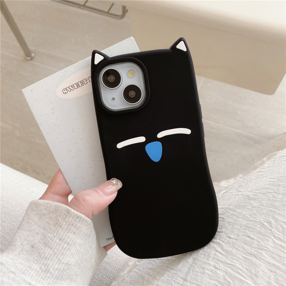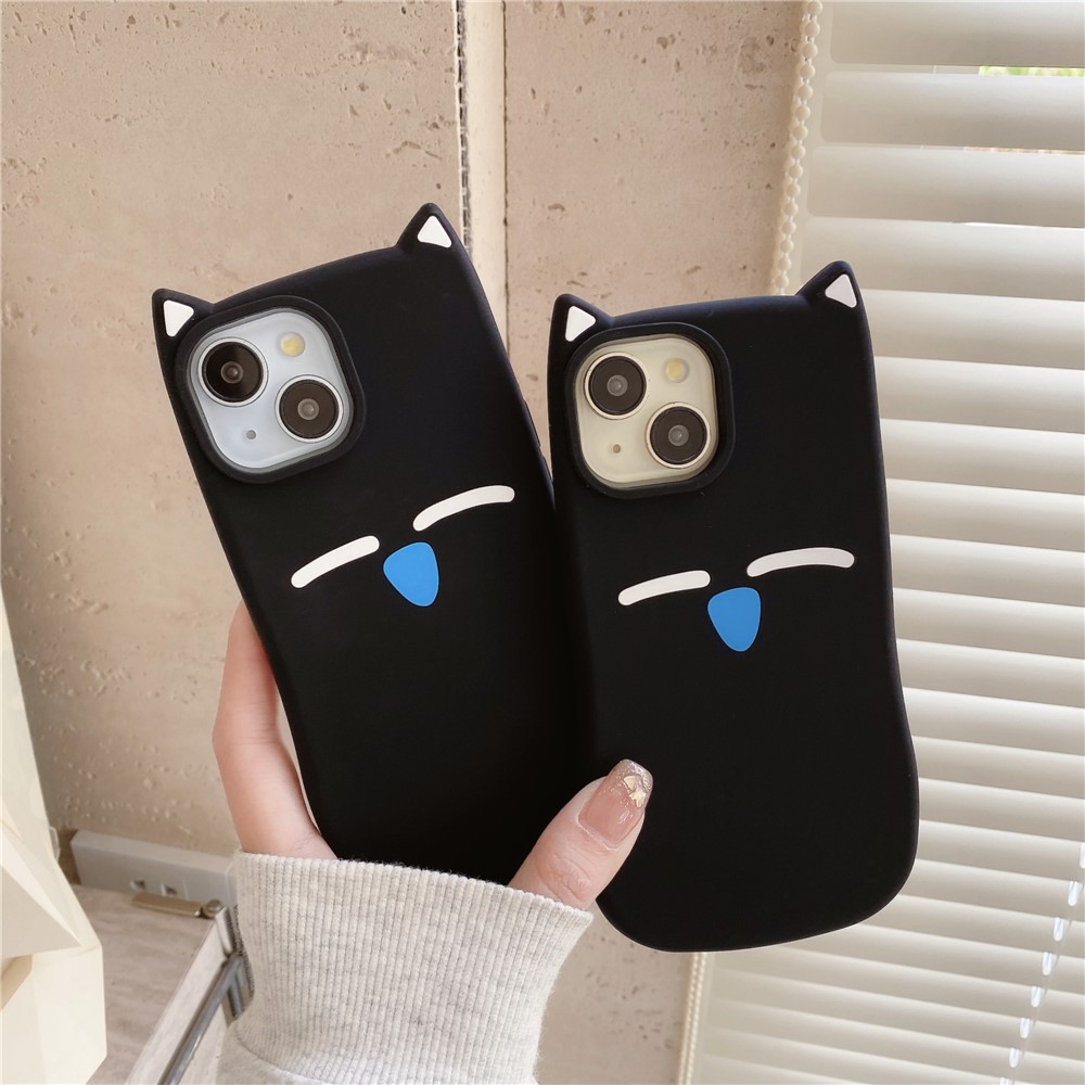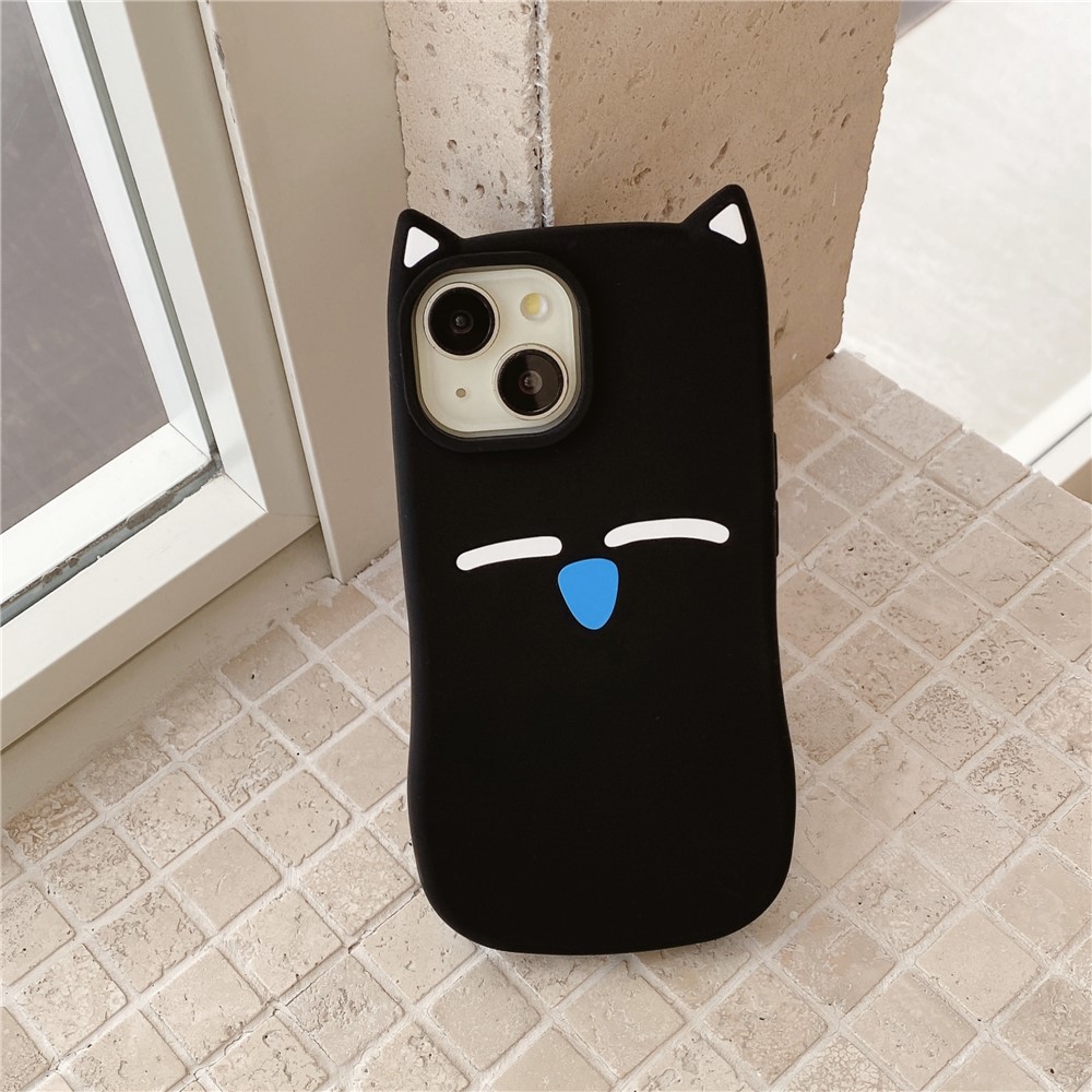 For iPhone 15 Silicone Case Cute Black Cat Design Shockproof Phone Back Cover