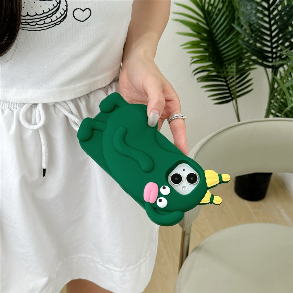 For iPhone 15 Silicone Case Cute Cucumber Sprite Design Shockproof Phone Back Cover