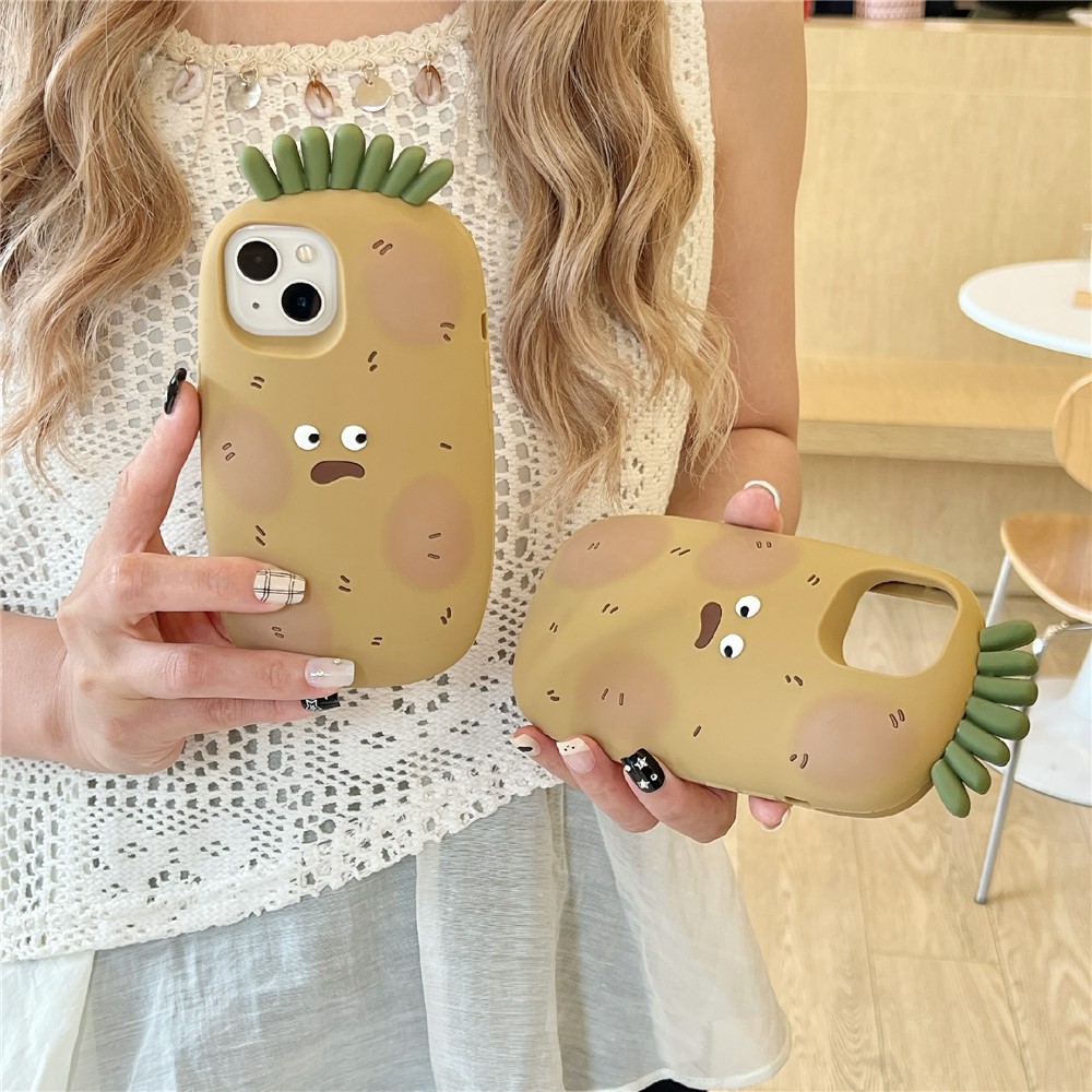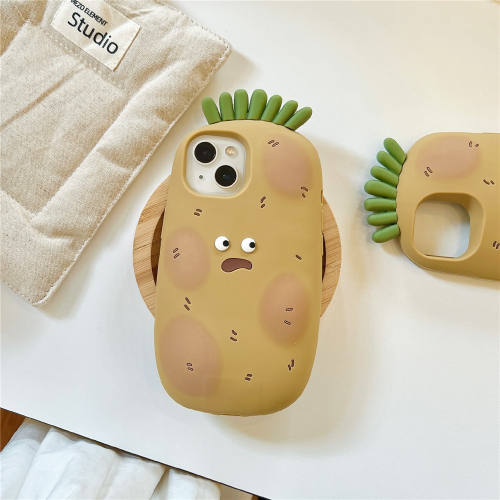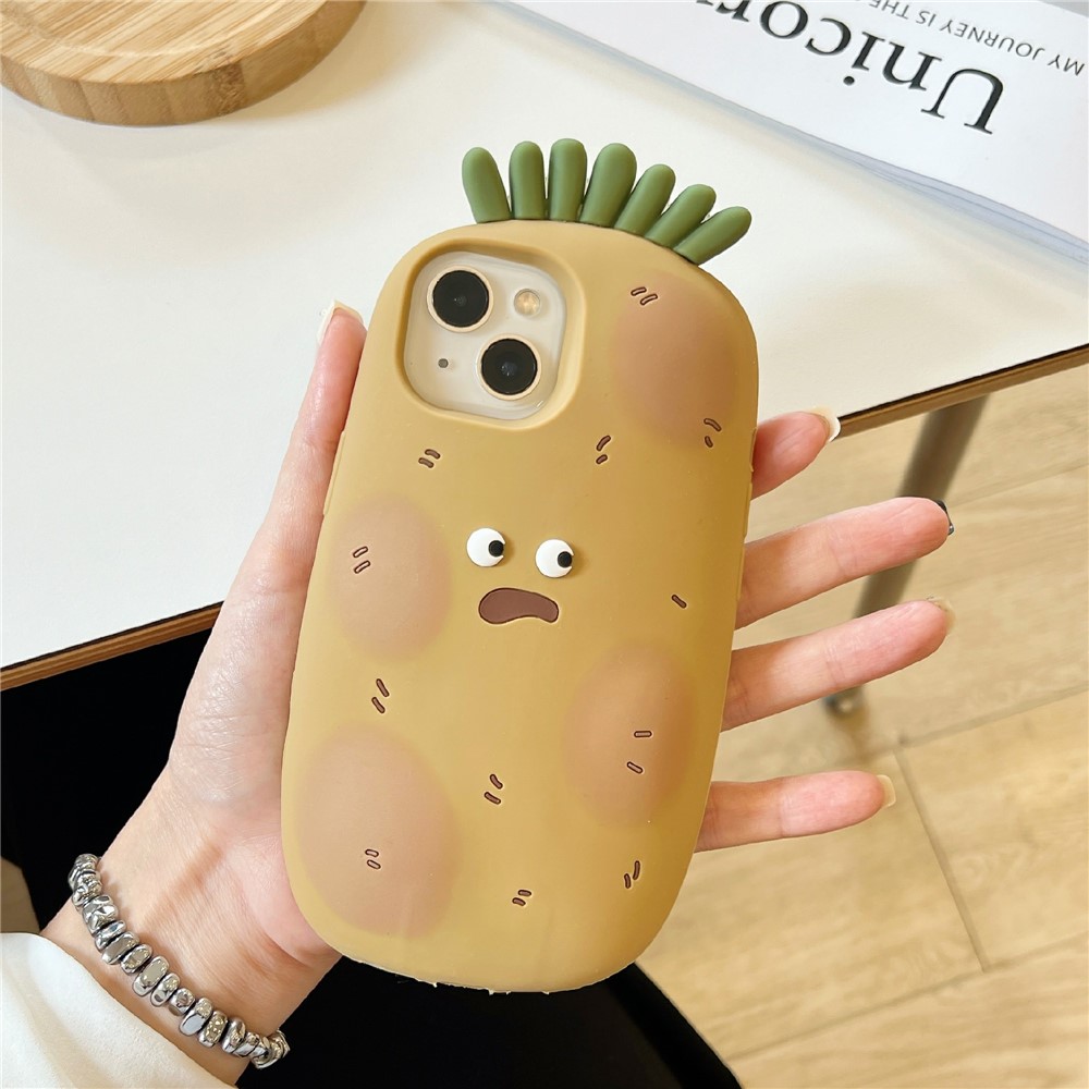 For iPhone 15 Silicone Case Cute Funny Potato Design Shockproof Phone Back Cover