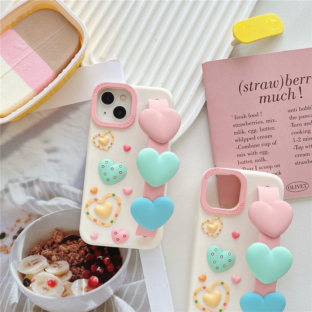 For iPhone 15 Silicone Case Cute Love Wrist Strap Design Shockproof Phone Back Cover