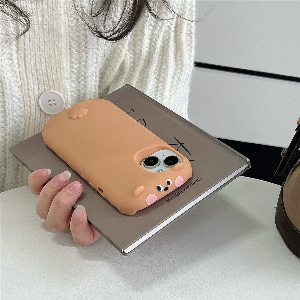For iPhone 15 Silicone Case Cute Sleeping Milk Tea Bear Design Shockproof Phone Back Cover