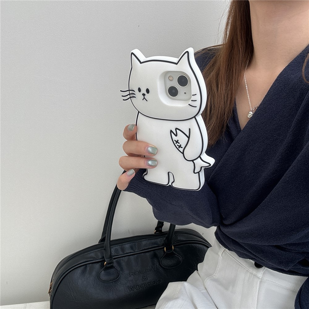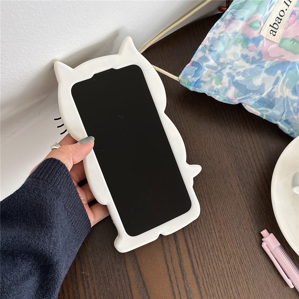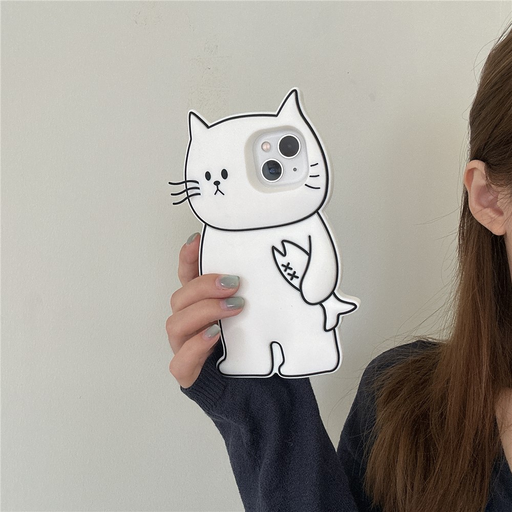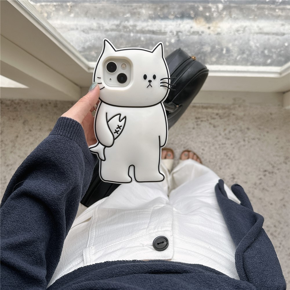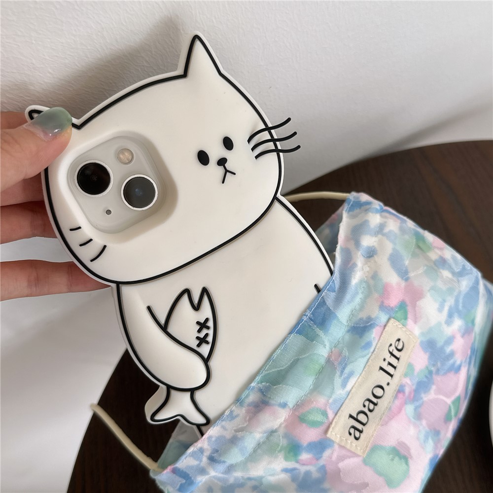 For iPhone 15 Silicone Case Cute White Cat Design Shockproof Phone Back Cover
