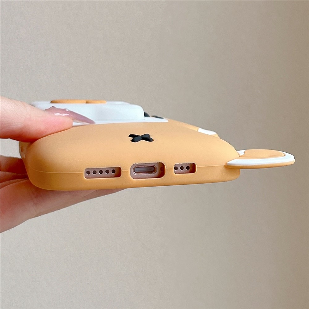For iPhone 15 Silicone Case Dog Eating Bone Design Lens Cover Kickstand Phone Cover