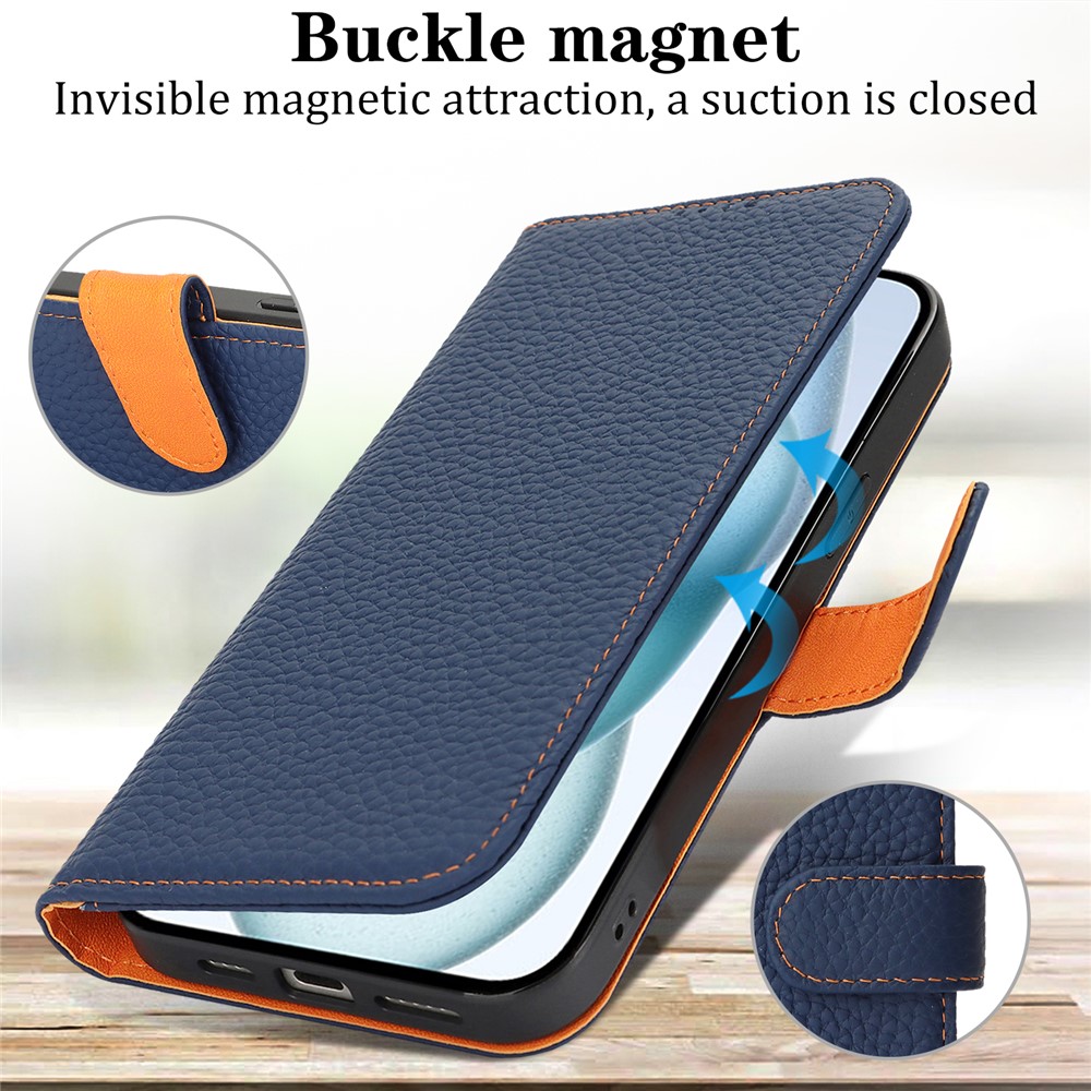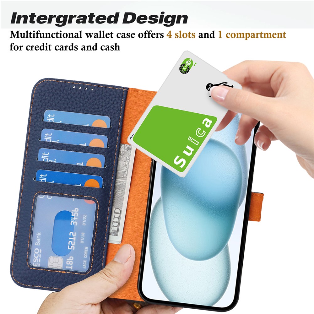 - Premium Material Combination Crafted with a litchi textured genuine cow leather exterior for a premium look and feel, paired with a flexible TPU inner shell that offers excellent shock absorption and long-lasting protection