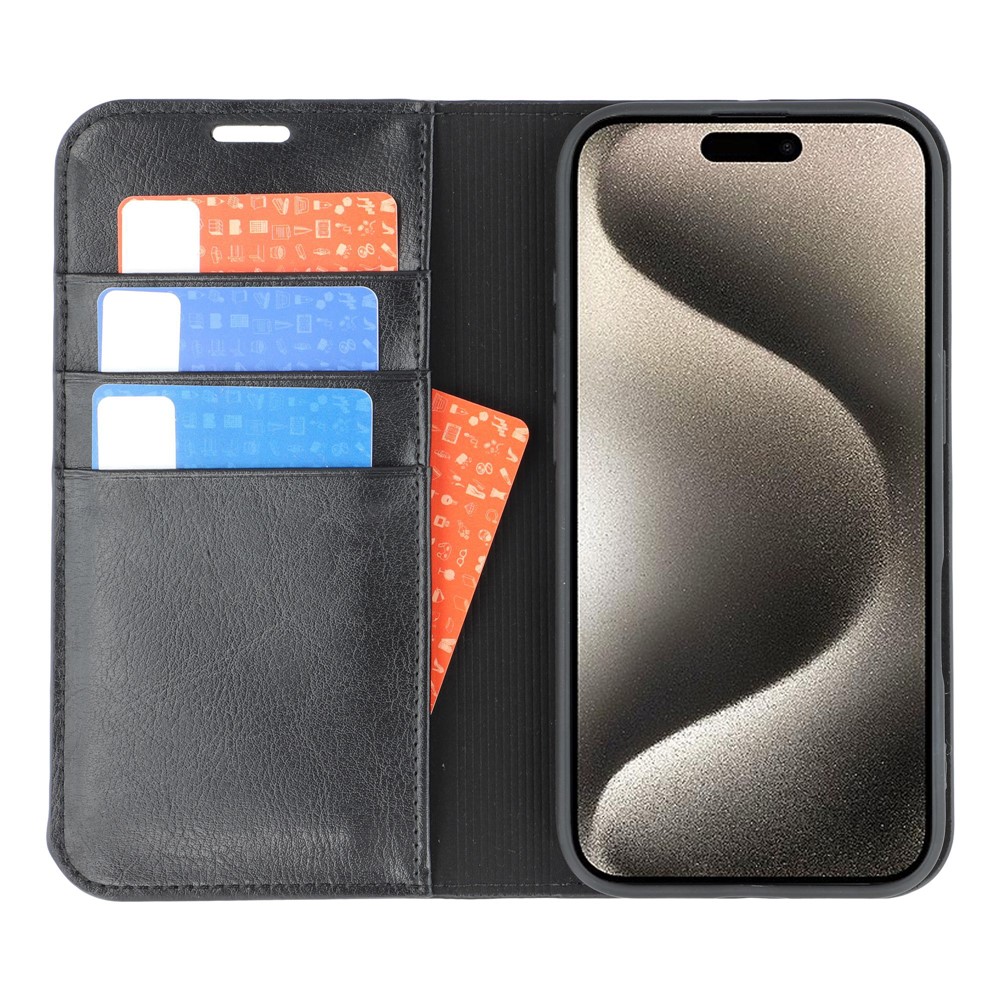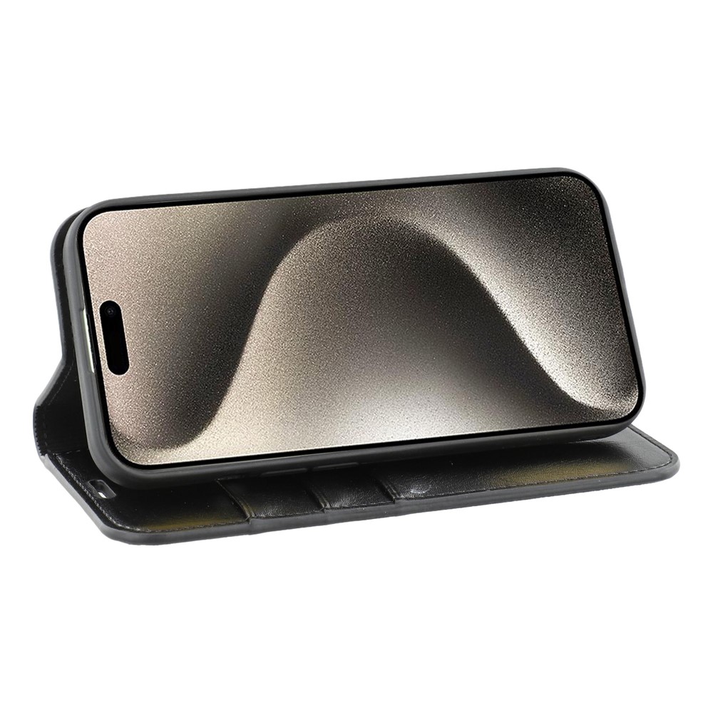 For iPhone 15 Stand Cases Genuine Split Leather Wallet Phone Cover Magnetic Closure