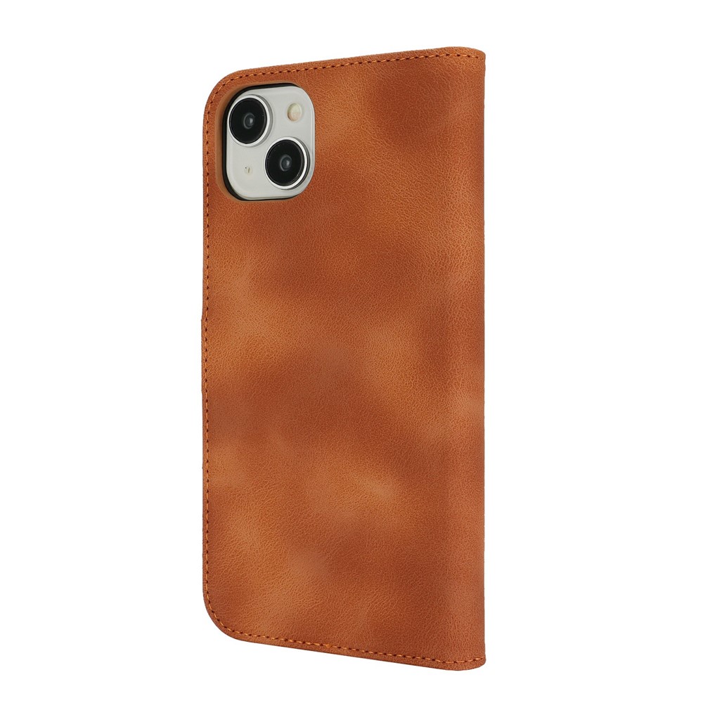 For iPhone 15 Wallet Case Double Folded Edge Skin Touch PU Leather Flip Phone Cover - Light Brown