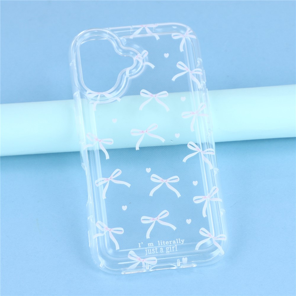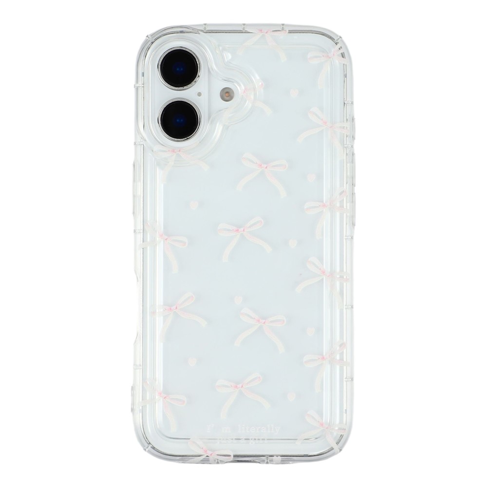 For iPhone 16 Case Bowknot Pattern TPU Phone Back Cover – Pink Bows