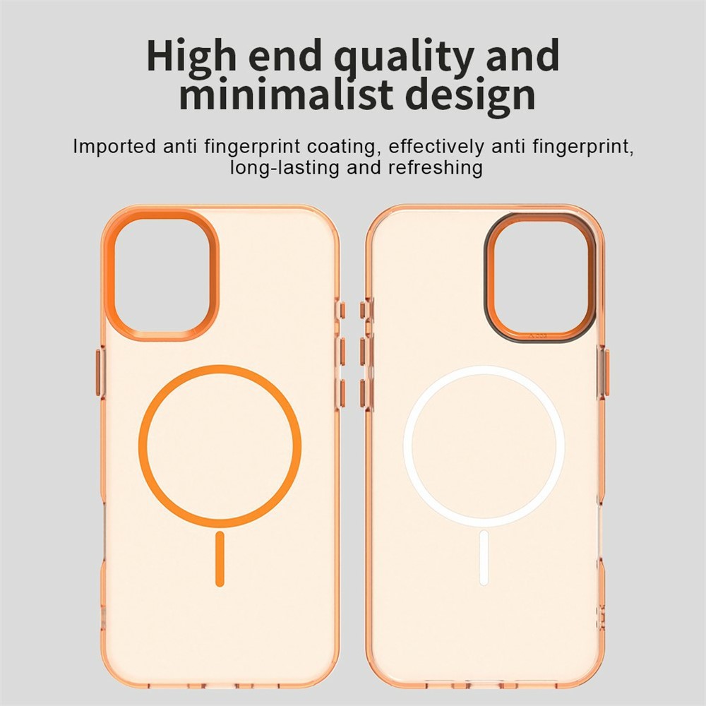 For iPhone 16 Case Candy Color PC + TPU + PET Phone Cover Compatible with MagSafe - Orange $14.94